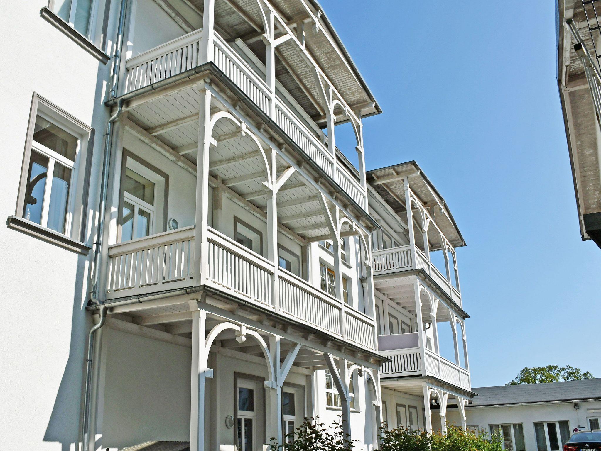 Das modernisierte Appartementhaus ist mit seinem Baustil an die Bäderstilarchitektur aus dem 19. Jahrhundert angelehnt. Schmucke Erker und einladende Balkone vermitteln das Wohlfühl-Ambiente, dass Sie für Ihren Rügen Urlaub erwarten dürfen ...