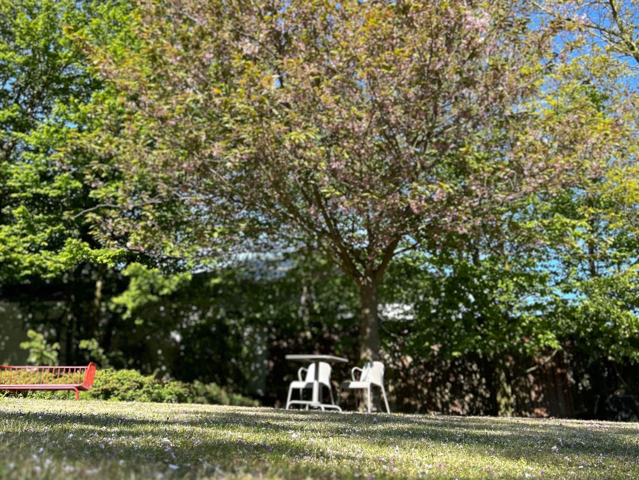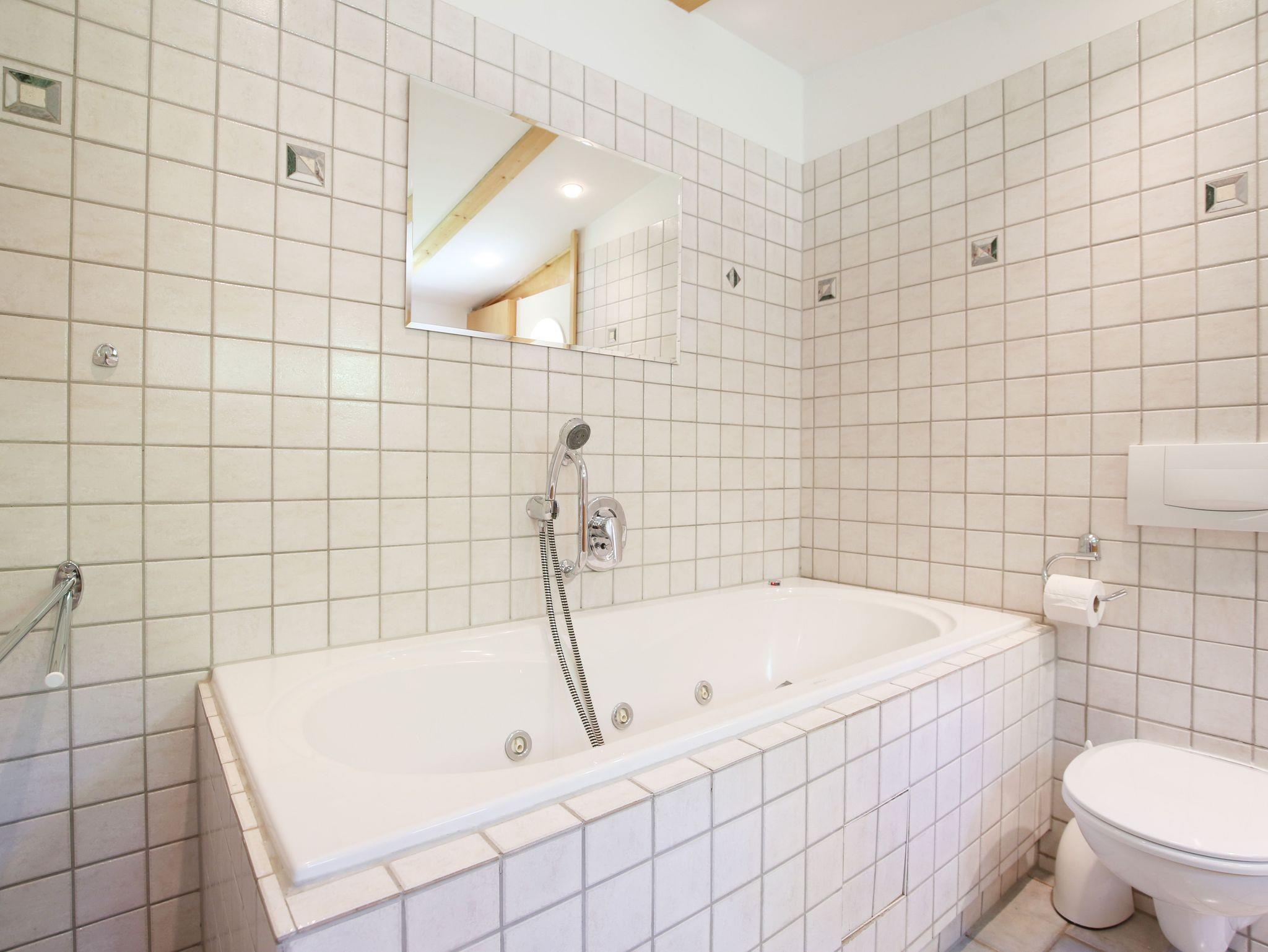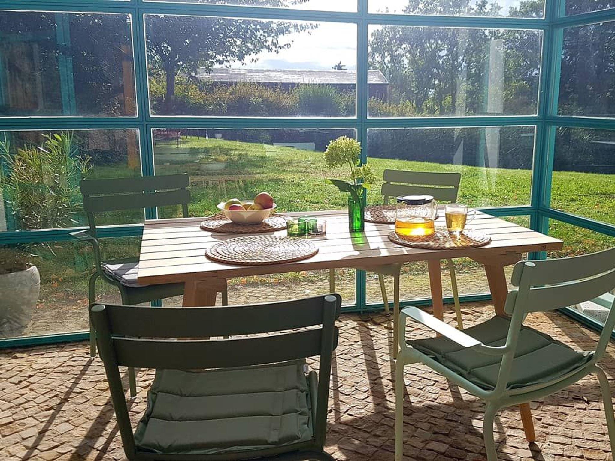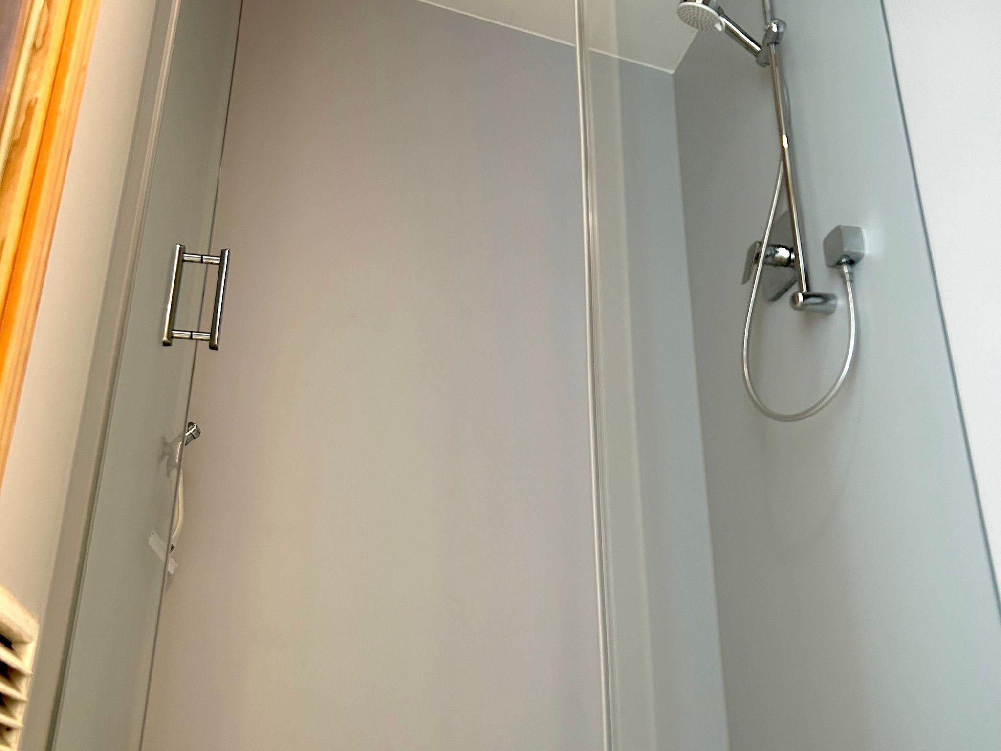 Im Erdgeschoß liegt die komplett eingerichtete Küche mit Geschirrspüler, Mikrowelle, Backofen und Kombikühlschrank sowie ein Gäste-WC. Hier befindet sich auch der Essbereich und weiterhin eine Sitzgelegenheit im Wintergarten, welcher durch die Glasschiebetüren betreten werden kann. Die Küche wird mit einer Fußbodenheizung beheizt. Von hier aus geht es hinaus auf die kleine Terrasse und die große Wiese davor. Sonnenliegen, Sonnenschirm, Grillmöglichkeit und PKW-Stellplatz sind vorhanden. Bettwäsche und Handtücher (exklusive Saunahandtücher) sind mit der Wohnung zu mieten.