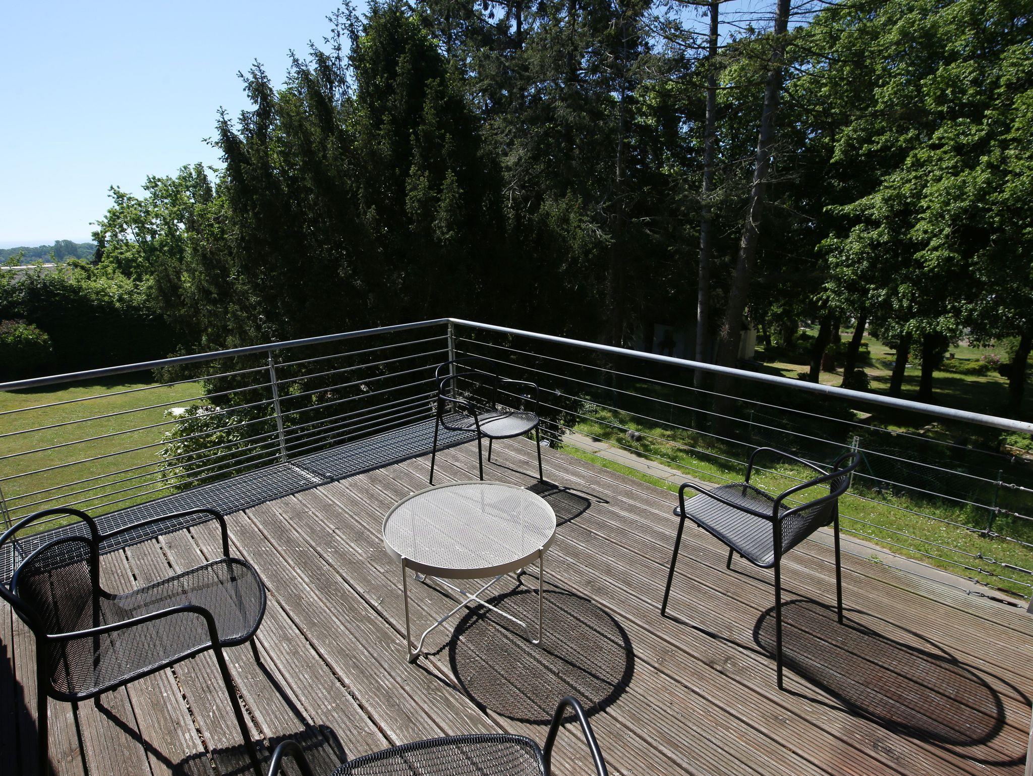 Das mit viel Holz in angenehmer, moderner Architektur errichtete, freistehende Haus befindet sich auf einem ca. 1.400 qm großen, umzäunten Grundstück. Es liegt am Ende einer Sackgasse am Ortseingang des Ostseebades Göhren. Die Nutzung dieses großen Grundstücks teilen sich die Mieter der beiden Ferienwohnungen exklusiv. Die ruhige, naturnahe Waldrandlage verspricht Entspannung und Erholung besonders nach einem Tag am belebten Strand oder einem erlebnisreichen Ausflug über die Insel. Hier kann man sich zurückziehen und für sich sein.