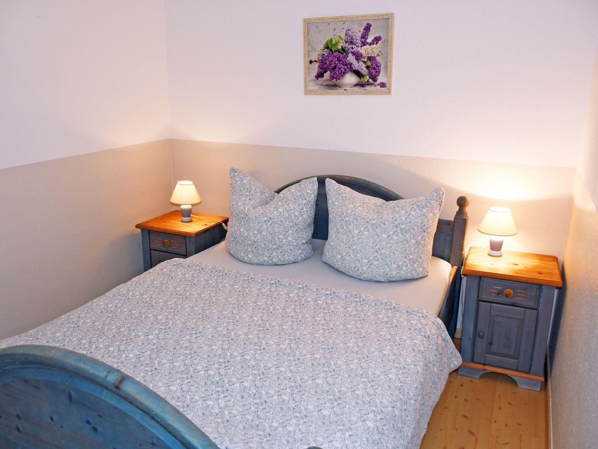 * Schlafzimmer mit einem Doppelbett (180 x 200 cm), großem Kleiderschrank und Nachtschränken