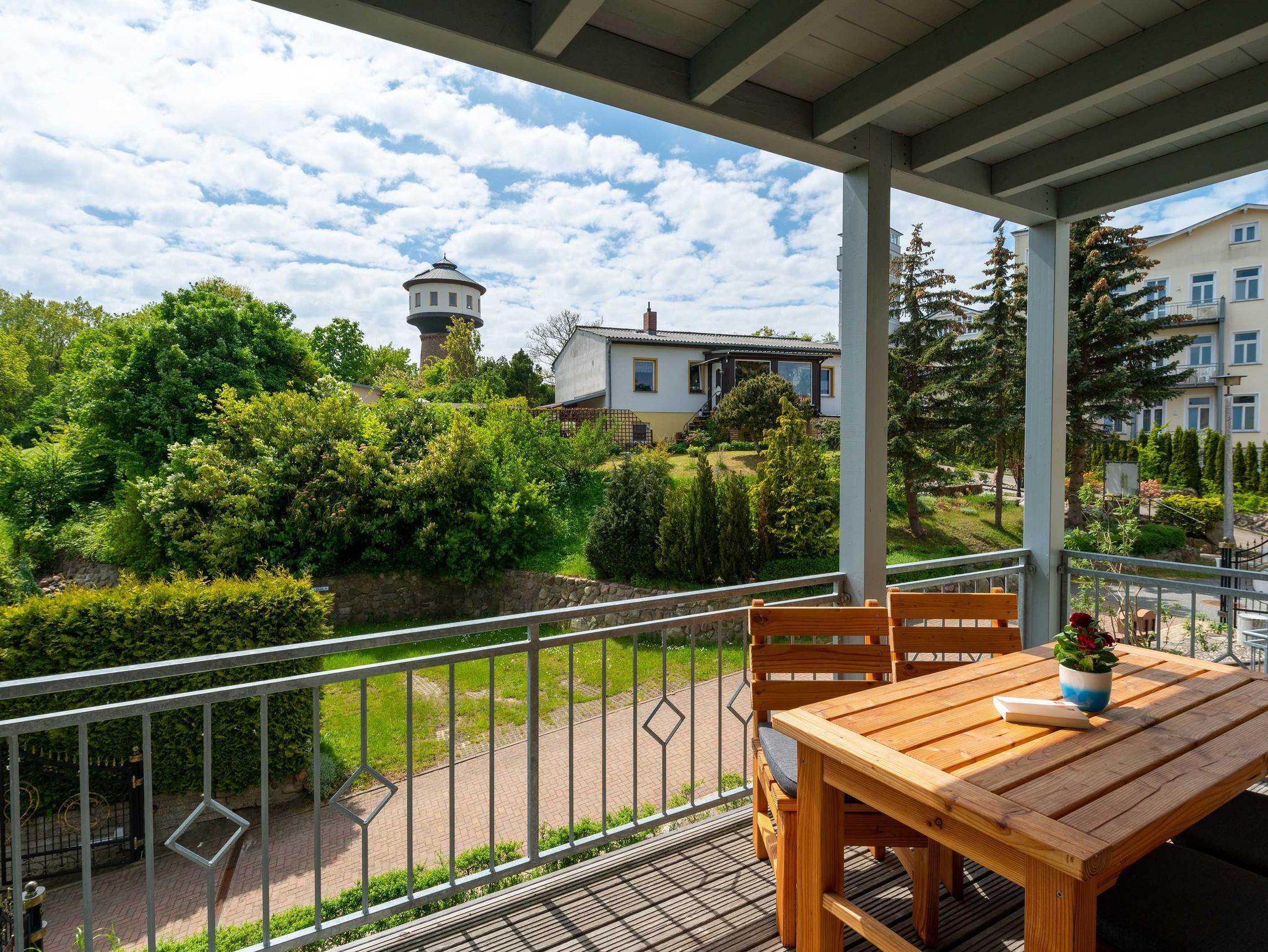 überdachter Südbalkon mit Blick ins Biosphärenreservat, Sitz- und Liegemöglichkeit, Elektrogrill