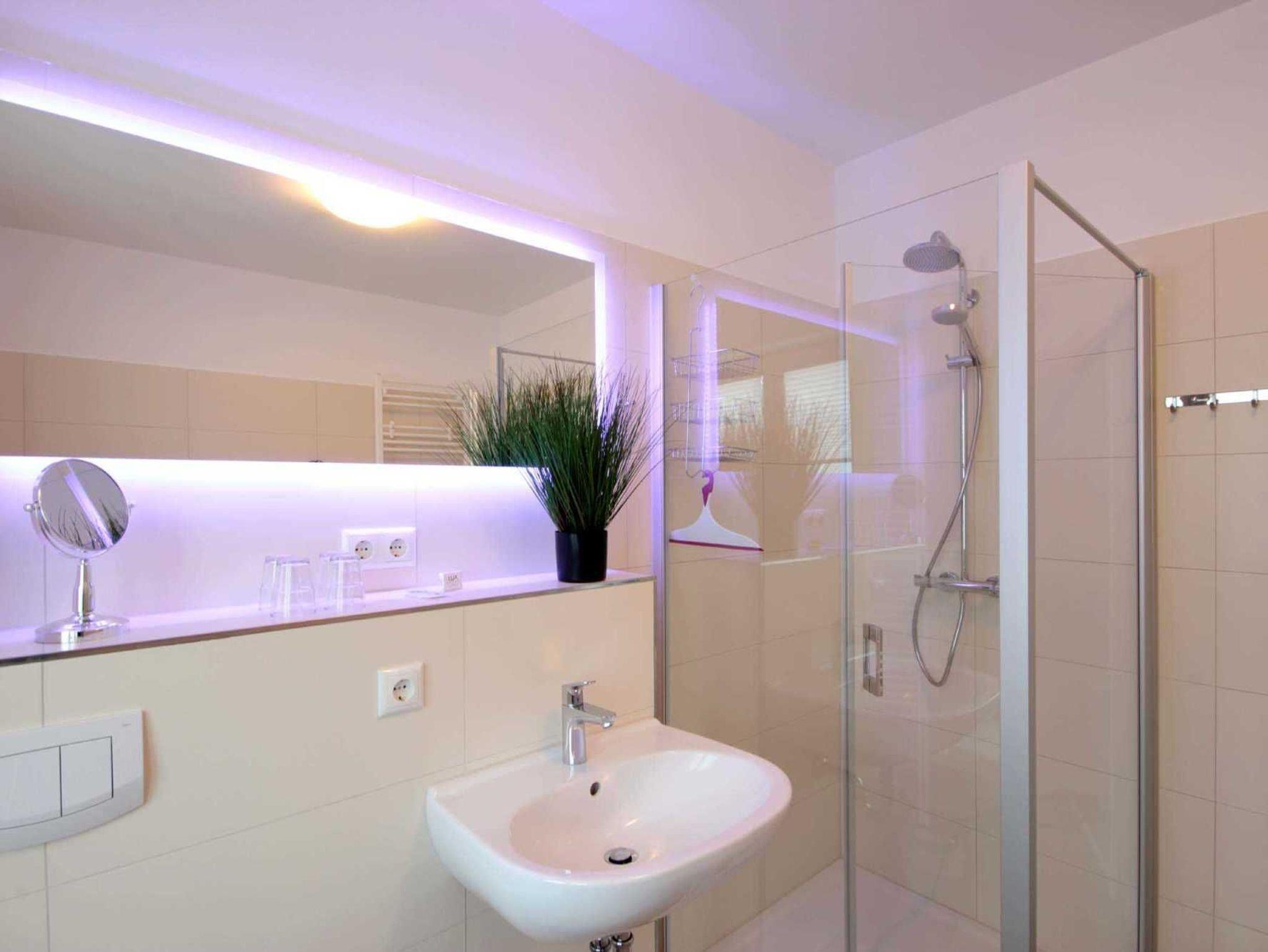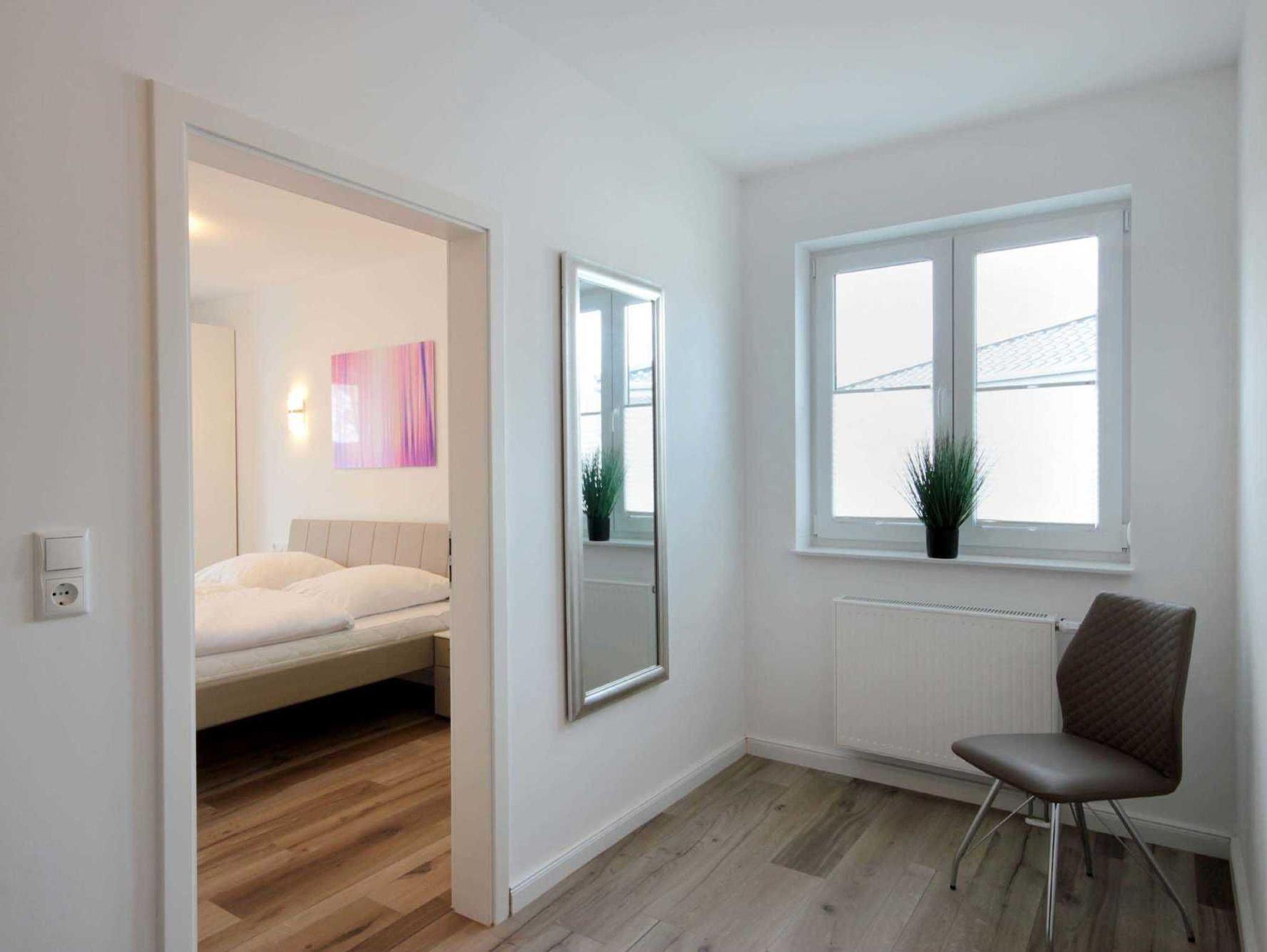 Über eine Treppe gelangen Sie in das Obergeschoss des Hauses mit 3 separaten Schlafzimmern. Hier erwarten Sie himmlische Träume in 2 gemütlichen Boxspringbetten und einem Standard-Doppelbett. In jedem Schlafraum befinden sich 1-2 Kleiderschränke. 2 Schlafräume haben einen weiteren Flachbildfernseher (43 Zoll). Ein Schlafzimmer verfügt über den direkten Zugang zum Balkon. Auf dieser Etage befindet sich nicht nur ein weiteres Tageslicht-Bad mit Dusche,Badewanne, Waschtisch und WC, sondern auch eine hauseigene Infrarotsauna (Münzbetrieb).