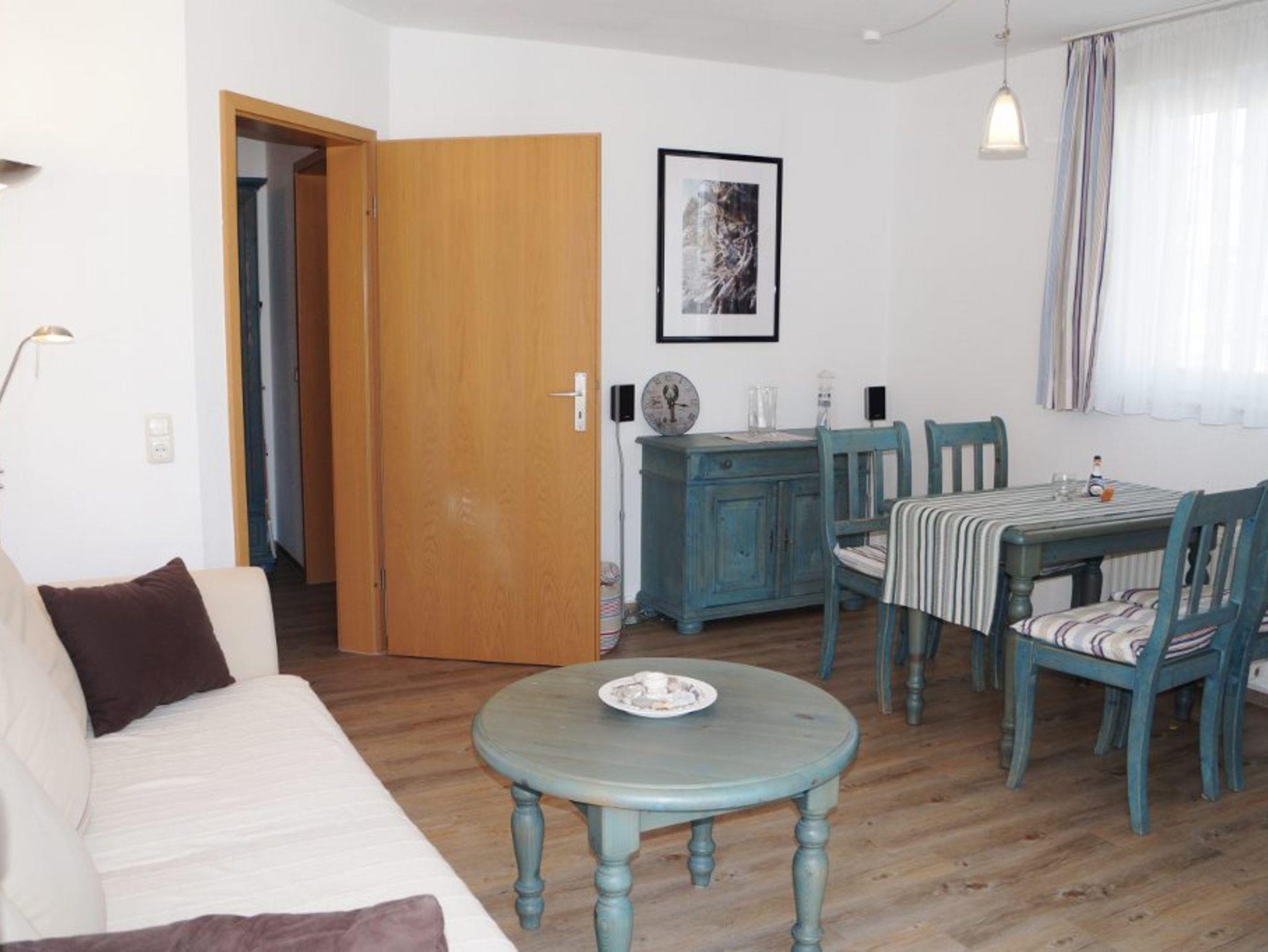 Das 2-Raum-Appartement 17 der Villa Karola befindet sich im 2. OG und verfügt über ca. 50 m² Wohnfläche und einen großzügig mit Gartenmöbeln bestuhlten Balkon, der zum gemeinsamen Frühstück im Freien einlädt. Der Balkon ist vom Wohnzimmer und Schlafzimmer begehbar. Der helle Wohn- und Essbereich des Appartements bietet neben einer großen bequemen Couch mit Schlaffunktion auch einen modernen Flatscreen-TV mit DVD/Heimkinoanlage. In der separaten Küche macht das Kochen im Urlaub richtig Spaß, denn die Einrichtung umfasst neben Geschirr und sämtlichen Küchenutensilien Ceranfeld, Kühlschrank, Geschirrspülmaschine, Backofen, sowie Kaffeemaschine, Wasserkocher und Toaster. Das Schlafzimmer ist liebevoll mit einem Doppelbett und einem geräumigen Kleiderschrank möbliert und auch das Duschbad lässt keine Wünsche offen. Das Appartement ist für 2-4 Personen buchbar.