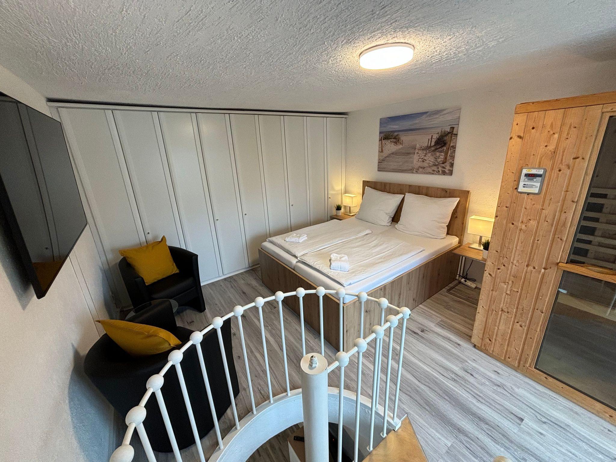Haus mit Whirlpool zur alleinigen Nutzung und Wärmekabine, Schlafzimmer, Dachterrasse und Terrasse im Erdgeschoss, Wohnzimmer, Bad und Küche, Stellplatz und schnellem Wlan.