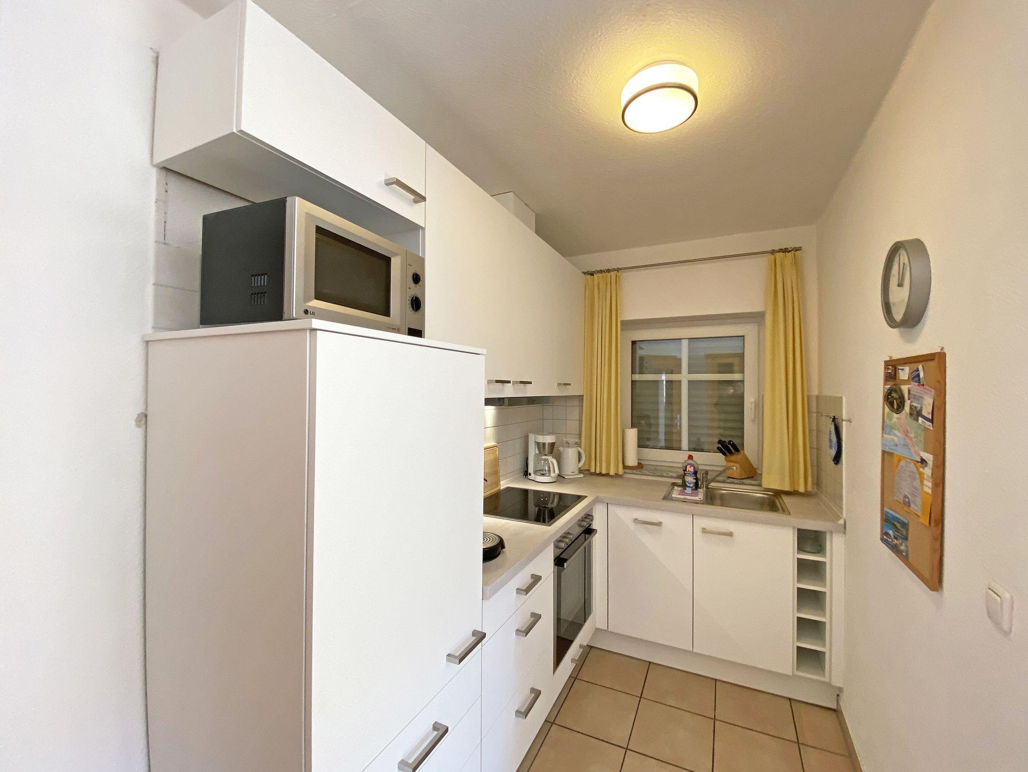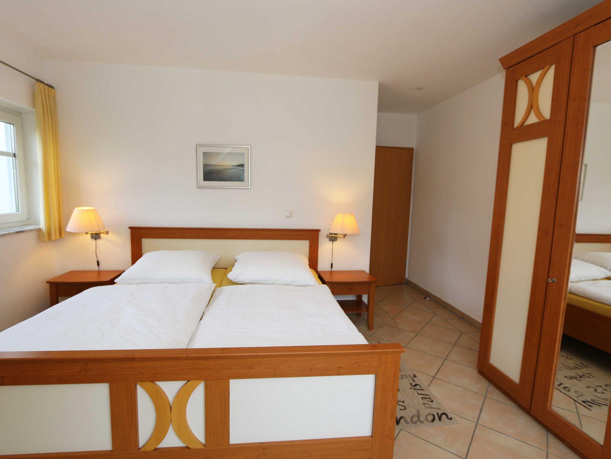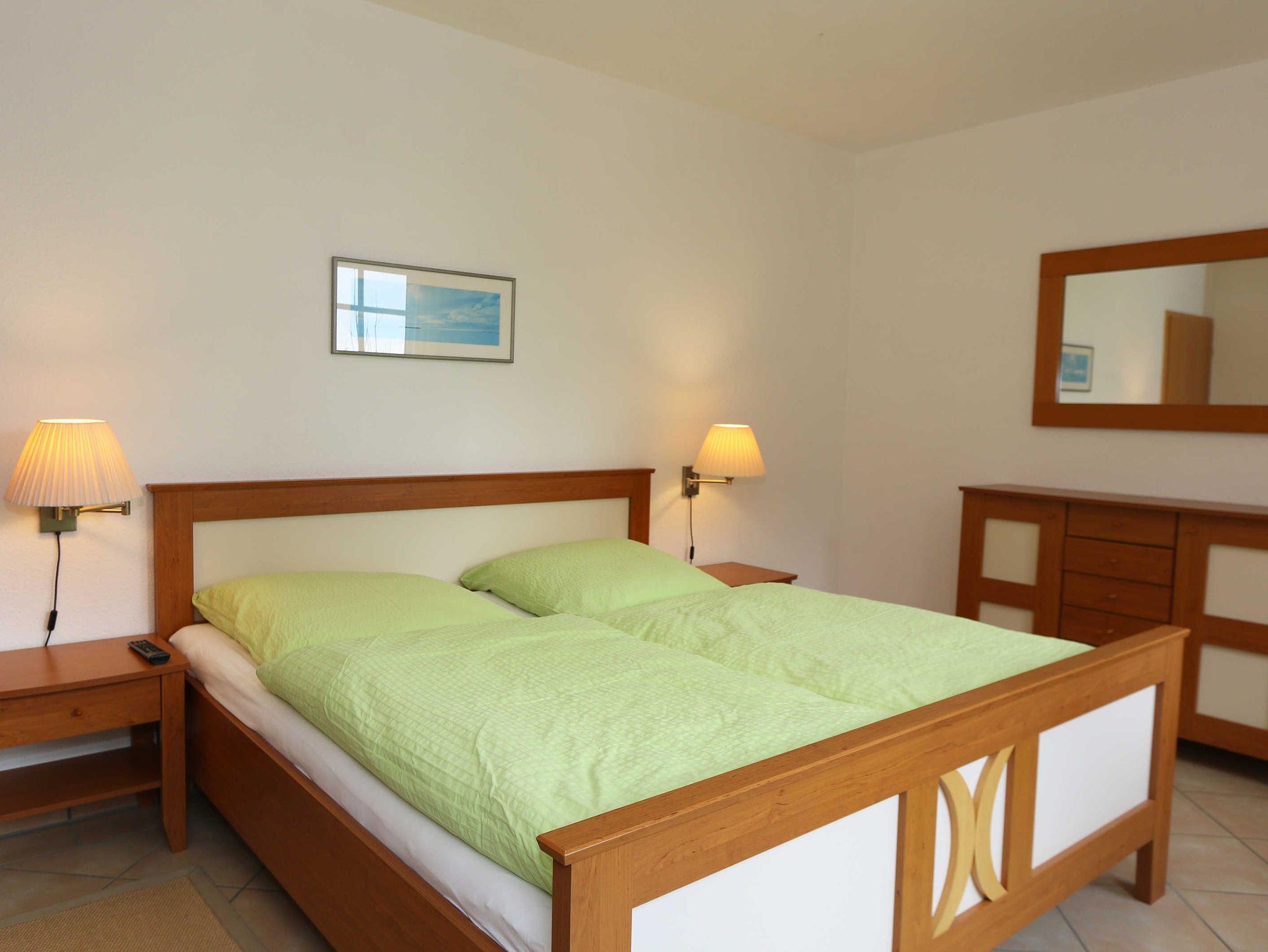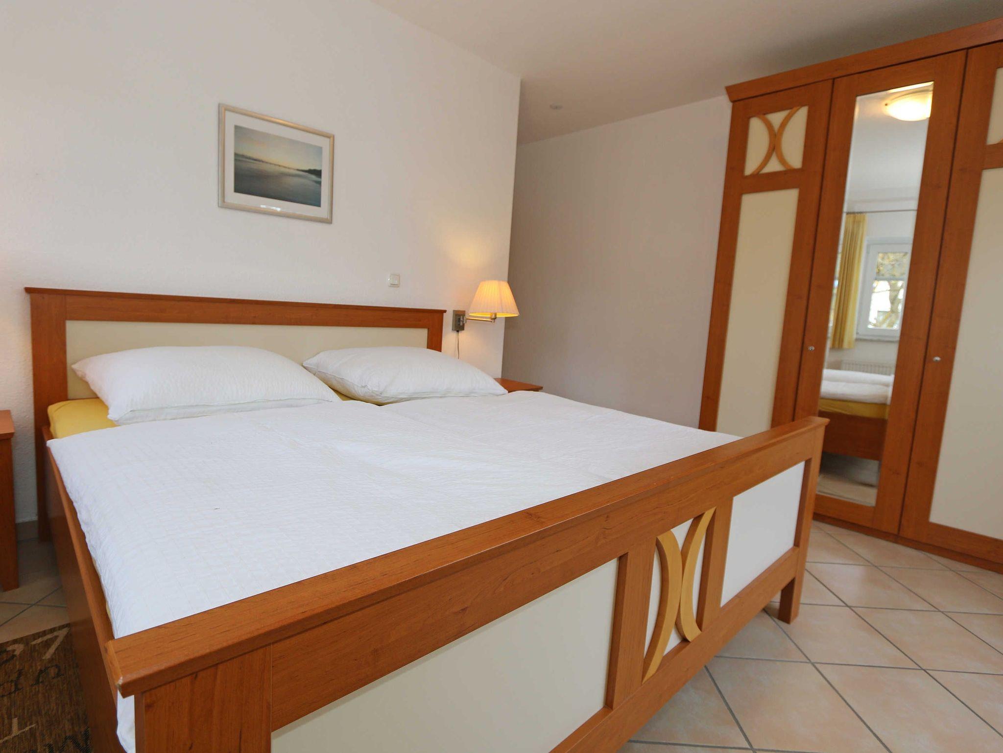 Die lichtdurchflutete, komfortable Nichtraucherwohnung verläuft auf über 78 qm und ist ideal für 2 bis 4 Personen geeignet. Ein Kleinkind (3 Jahre) im Kinderreisebett kann als Aufbettung (5. Person) untergebracht werden. Die beiden Balkone (Richtung Westen und Süden) laden zum Verweilen ein und erlauben es Ihnen den ganzen Tag die mitwandernde Sonne zu genießen. Der kombinierte Wohn- und Essbereich ist mit einer hellen Küchenzeile ausgestattet. Die Küchenzeile beinhaltet ein Ceranfeld, Backofen, Geschirrspüler, Mikrowelle, Kühlschrank mit Gefrierfach, Kaffeemaschine, Senseo Padmaschine, Toaster, Wasserkocher sowie diverse Küchenutensilien. Der dazugehörige Essbereich umfasst einen Esstisch mit 4 Stühlen. Ein Wohnbereich mit Sofa, Sessel, Couchtisch, Vitrine, Leselampe, Flatscreen-TV mit DVD-Player und Stereoanlage mit CD-Player runden das Ganze ab. Das 1. Schlafzimmer ist mit einem Doppelbett (1,80 m x 2,00 m), 2 Nachtschränken, einen Flachbild-TV und Kleiderschrank ausgestattet. Von hier aus haben Sie Blick auf die Ostsee. Das 2. Schlafzimmer verfügt ebenfalls über ein Doppelbett (1,80 m x 2,00 m), 2 Nachtschränke und einen Kleiderschrank. Für einen ruhigen Schlaf sorgen in beiden Schlafzimmern Rollläden. Das großzügige Bad ist mit einer Dusche mit flachem Einstieg, Fön, WC und Waschtisch ausgestattet. In einem separaten Abstellraum, welcher zur Wohnung gehört finden Sie diverse Reinigungsutensilien sowie einen Wäscheständer. Auch im Urlaub brauchen Sie auf einen Internetzugang (WLAN über Hotspot) in Ihrer Wohnung nicht zu verzichten. Dieser ist inklusive. 1x Kinderreisebett (ohne Matratze und Bett Inlett) ist für unsere kleinen Gäste inklusive. Ein Hochstuhl kann gegen eine Extragebühr dazu gebucht werden. Haustiere sind nicht erlaubt. In einem Gemeinschaftsraum können Sie gegen einen Aufpreis eine Waschmaschine und einen Trockner nutzen. Der Parkplatz (Nr. 4) befindet sich direkt auf dem Grundstück. Ihre Fahrräder können Sie auf dem Areal in einen Fahrradschuppen unterstellen. Ein Gemeinschaftsgrillplatz mit massiven Holzbänken und Standgrill ist vorhanden. Die Erstausstattung eines Wäschepaketes (komplette Bettwäsche, 1 Duschhandtuch, 2 kleine Handtücher) können Sie bis 14 Tage vor Anreise gegen einen Aufpreis dazu buchen oder durch eigene ergänzen. Ab 2 gebuchten Paketen erhalten Sie einmalig 1 Geschirrhandtuch und 1 Duschvorleger hinzu.