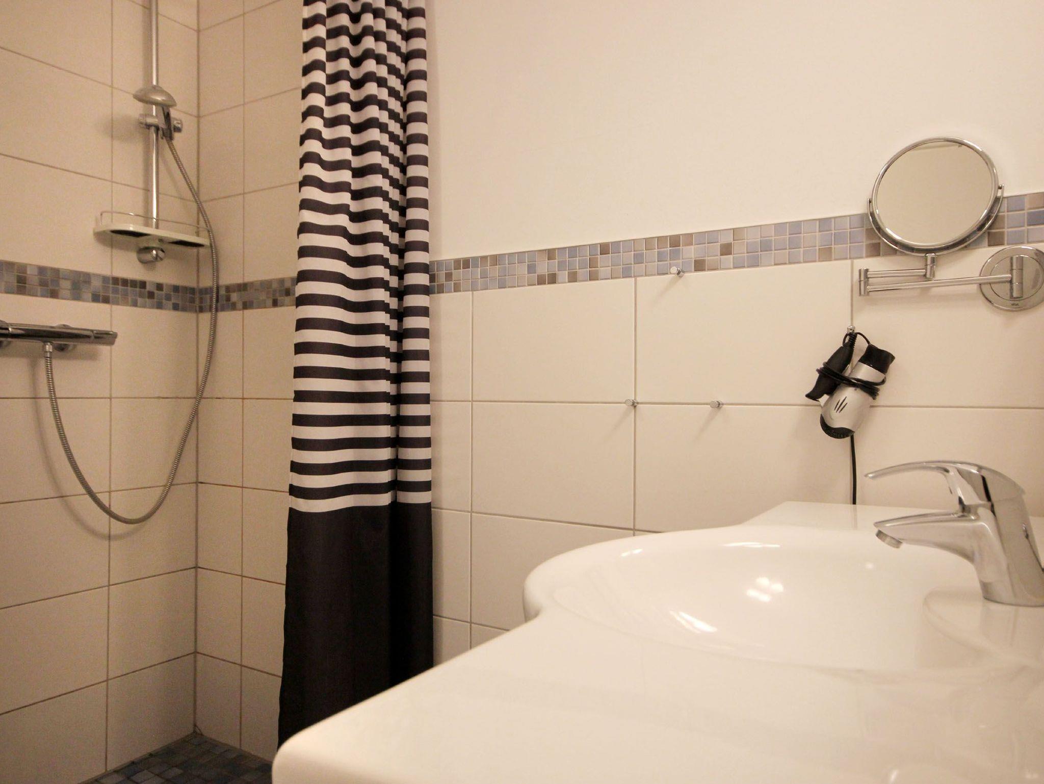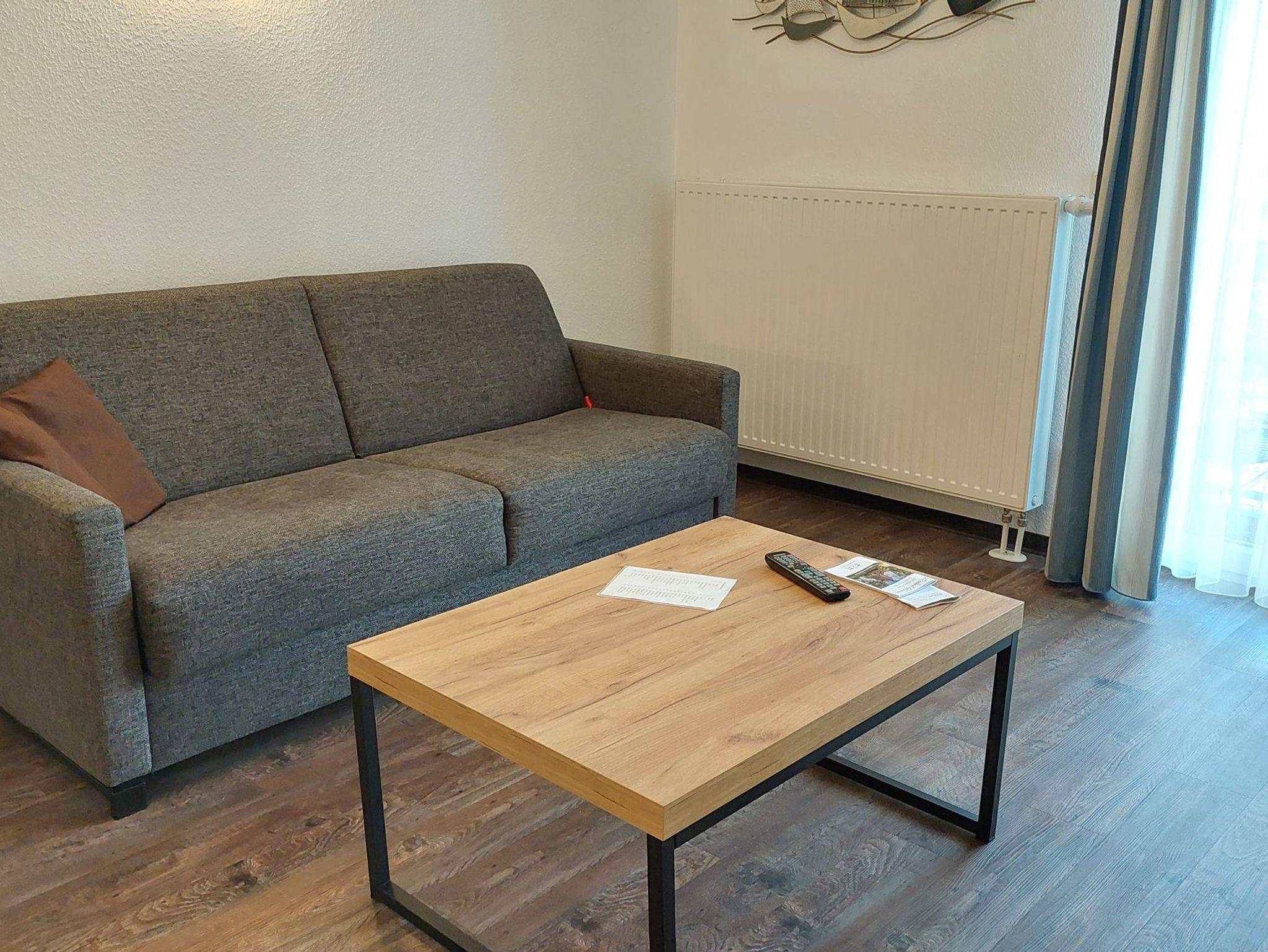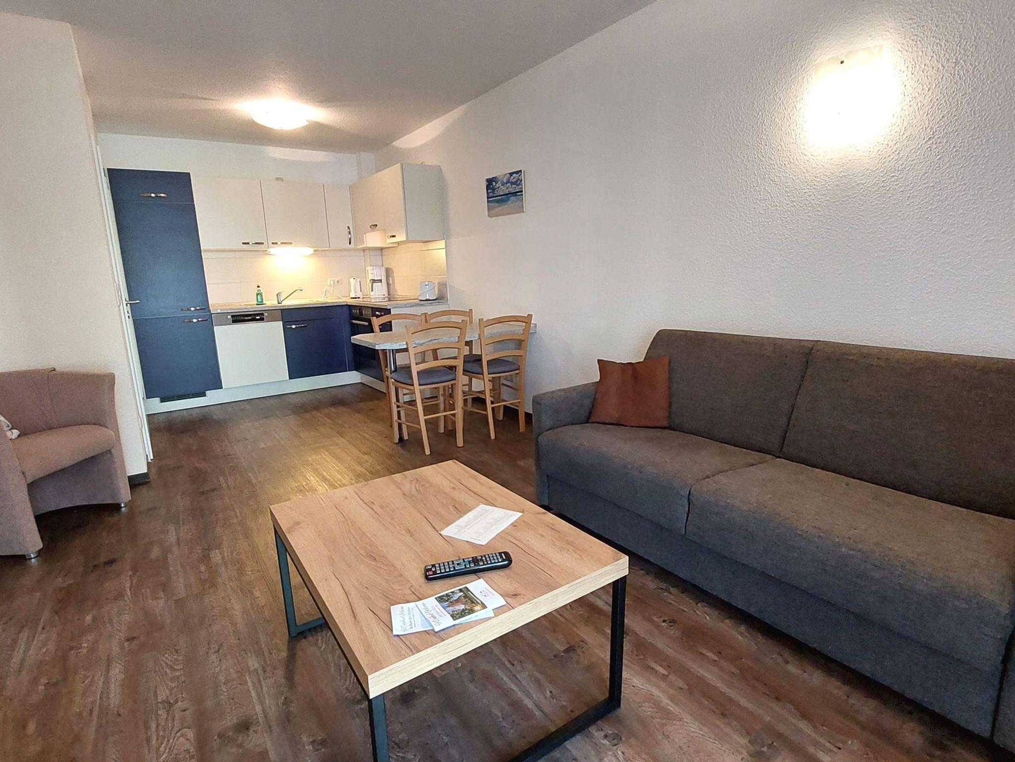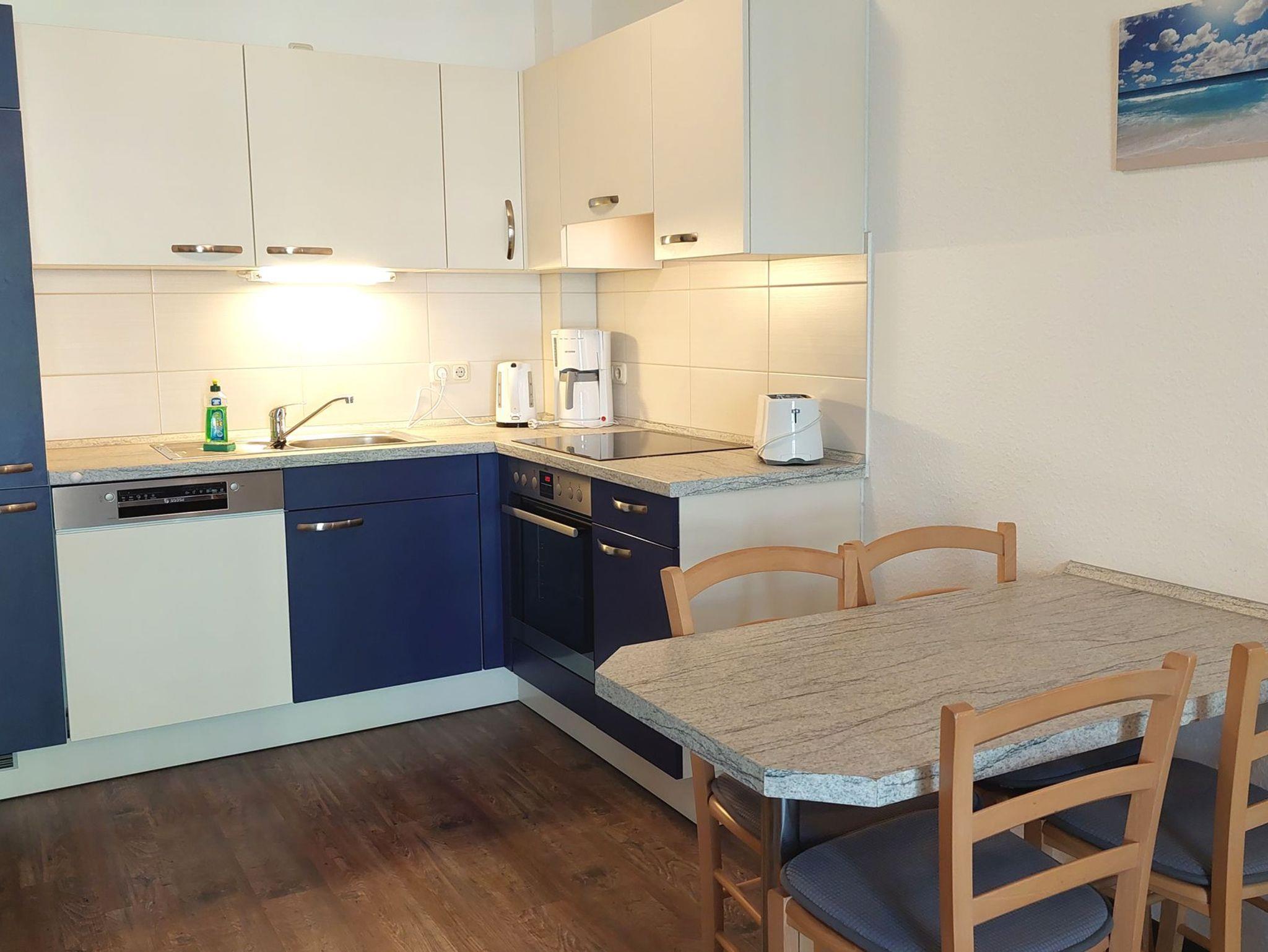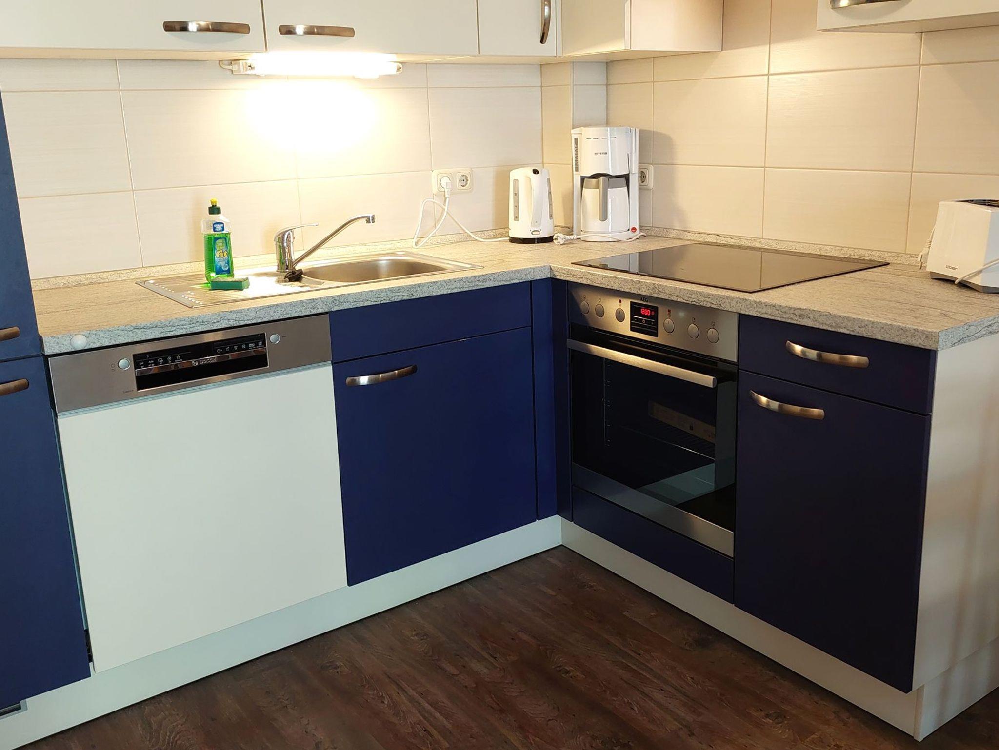 Diese freundliche Wohnung ist aufgeteilt in einen Wohnraum mit französischem Balkon und integrierter Küchenzeile, ein Schlafzimmer ebenso mit Zugang zum Balkon und ein Duschbad mit Waschtisch und WC. Das Wohnzimmer begrüßt Sie mit einem Schlafsofa und Sessel sowie Flachbild-TV. Das Schlafzimmer verfügt über ein Doppelbett (1,80m x 2m) sowie einen Kleiderschrank. Die Küchenzeile ist mit Backofen, Geschirrspüler, Cerankochfeld, Kühlschrank mit kleinem Gefrierfach, Cerankochfeld, Mikrowelle, Kaffeemaschine, Wasserkocher und Toaster ausgestattet. Highlights: Kostenfreies WLAN sowie ein frei wählbarer PKW-Stellplatz direkt am Haus. Haustiere sind in dieser Wohnung herzlich willkommen.