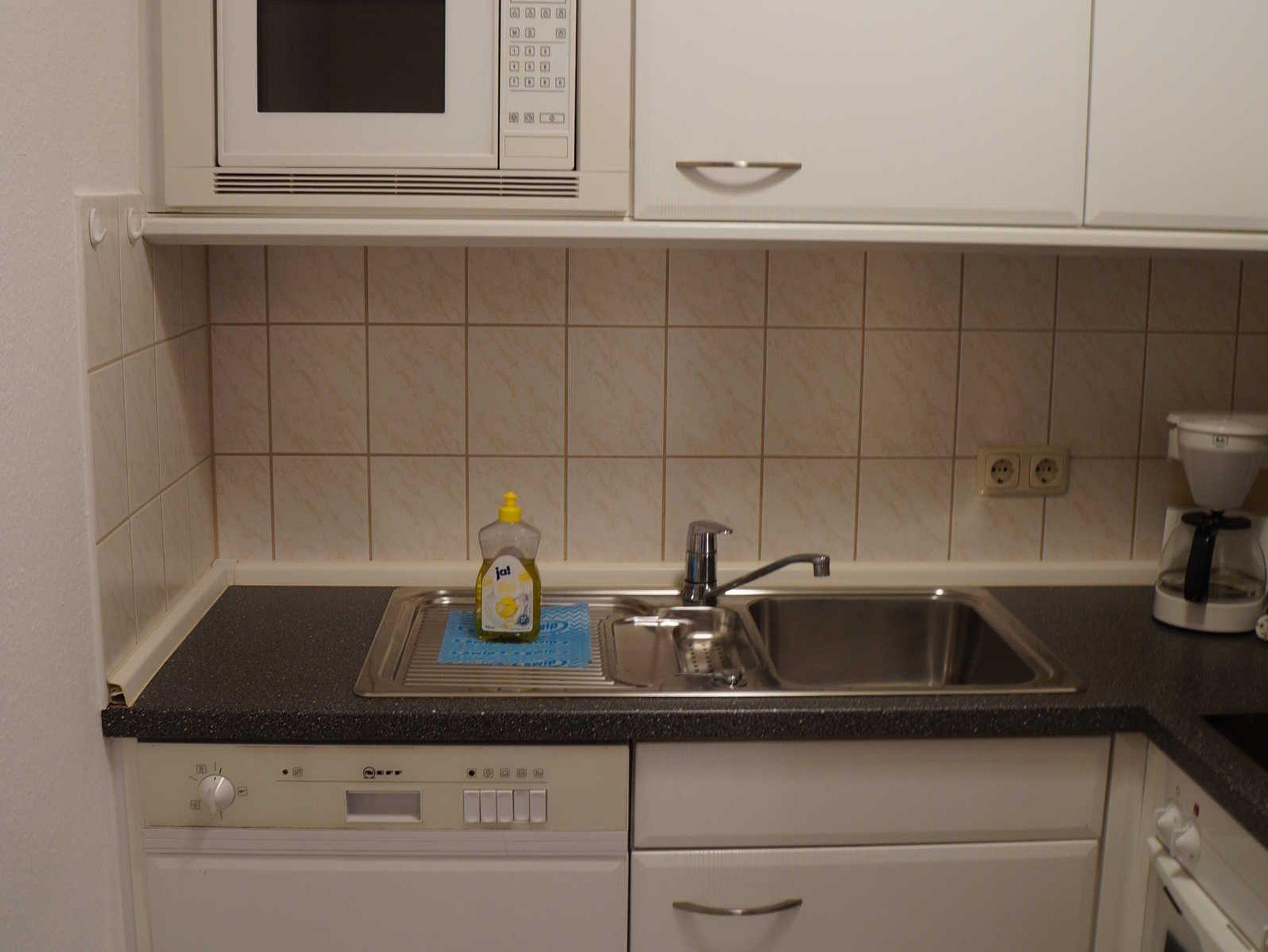 Weiter gehört zur Wohnung ein Schlafzimmer mit Doppelbett, ein Wohnraum mit Essbereich und ausziehbarer Doppelschlafcouch, TV und Radio. Eine abgeschlossenen Küche (Geschirrspüler, Mikrowelle,Ceranfeld, Backofen, Toaster etc.) und DU/WC gehören natürlich auch zur Raumaufteilung.