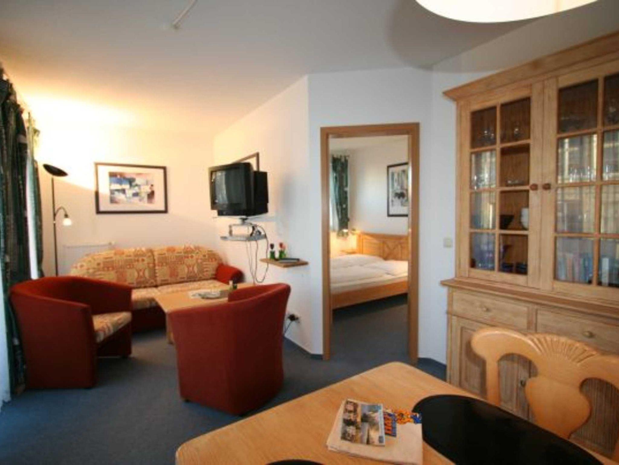 Sie wohnen in einem hübschen 2-Zimmer-Appartement für bis zu 2 Personen auf 40 m² Wohnfläche im 1. OG. Ein Schlafzimmer mit Doppelbett, Wohnraum mit Schlafcouch, separater Essplatz, voll ausgestatteter Küchenzeile mit Geschirrspüler, Dusche/WC mit Fön, Balkon, SAT-Farb-TV, DVD-Player, Aussenstellplatz für PKW, zwei Fahrräder stehen zur Verfügung (ein Herrenrad und ein Damenrad).