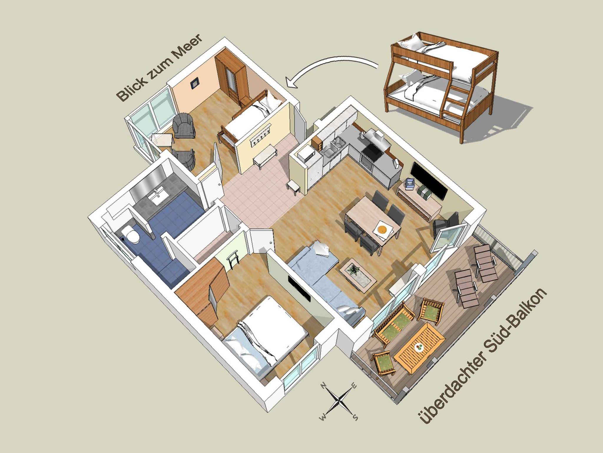 Komfortable 3 Zimmerwohnung für 4 Personen im Obergeschoß, ca. 70 qm