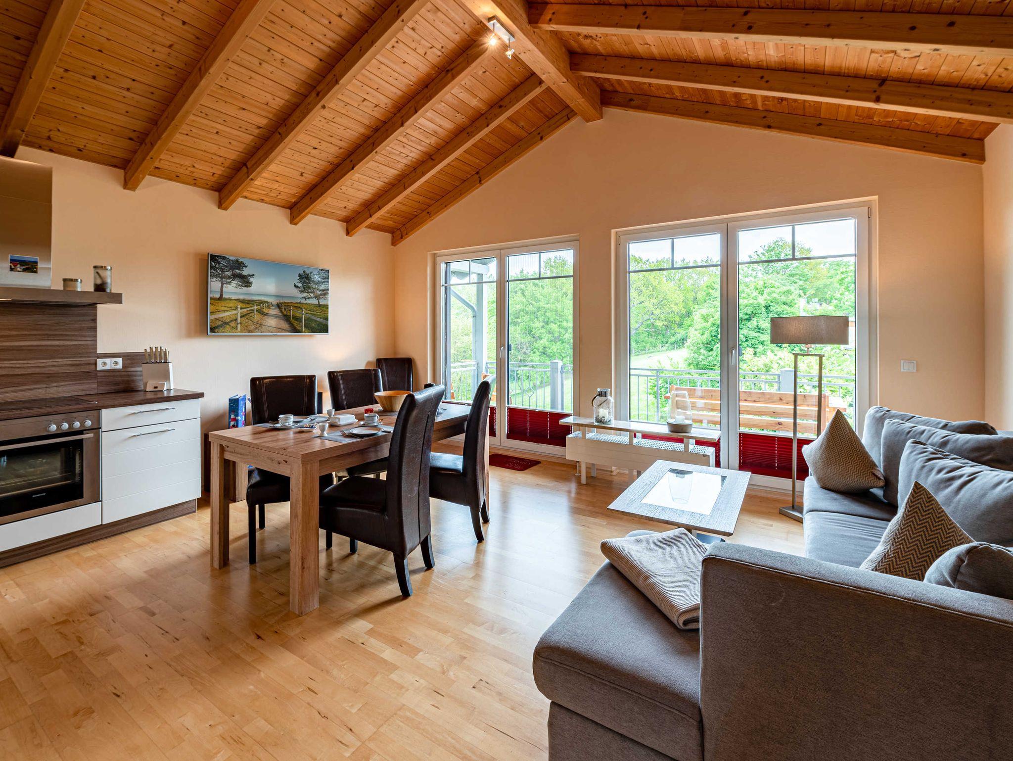 Die in 2010 erbaute Villa mit Blick ins Grüne und zum Meer ist mit modernen komfortablen Wohnungen ausgestattet. Die großzügigen überdachten Süd-Terrassen/-Balkone mit Blick in die herrliche Landschaft des Nordperd laden zu jeder Tageszeit ein, die Natur und frische Seeluft zu genießen.
