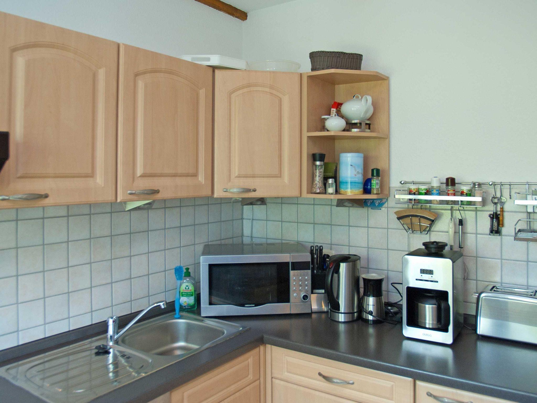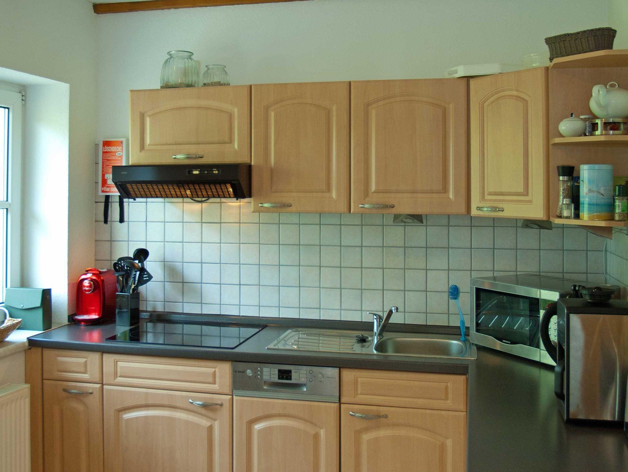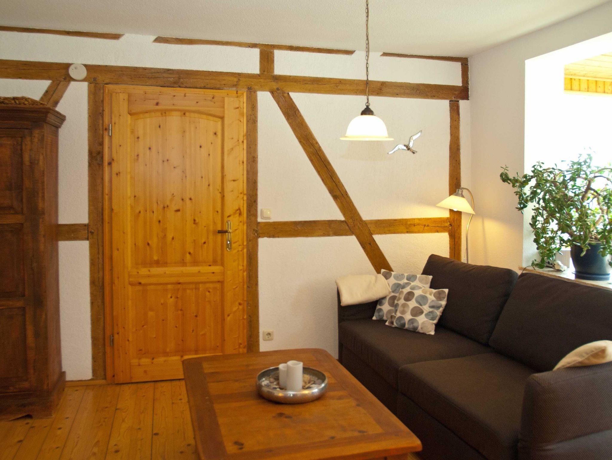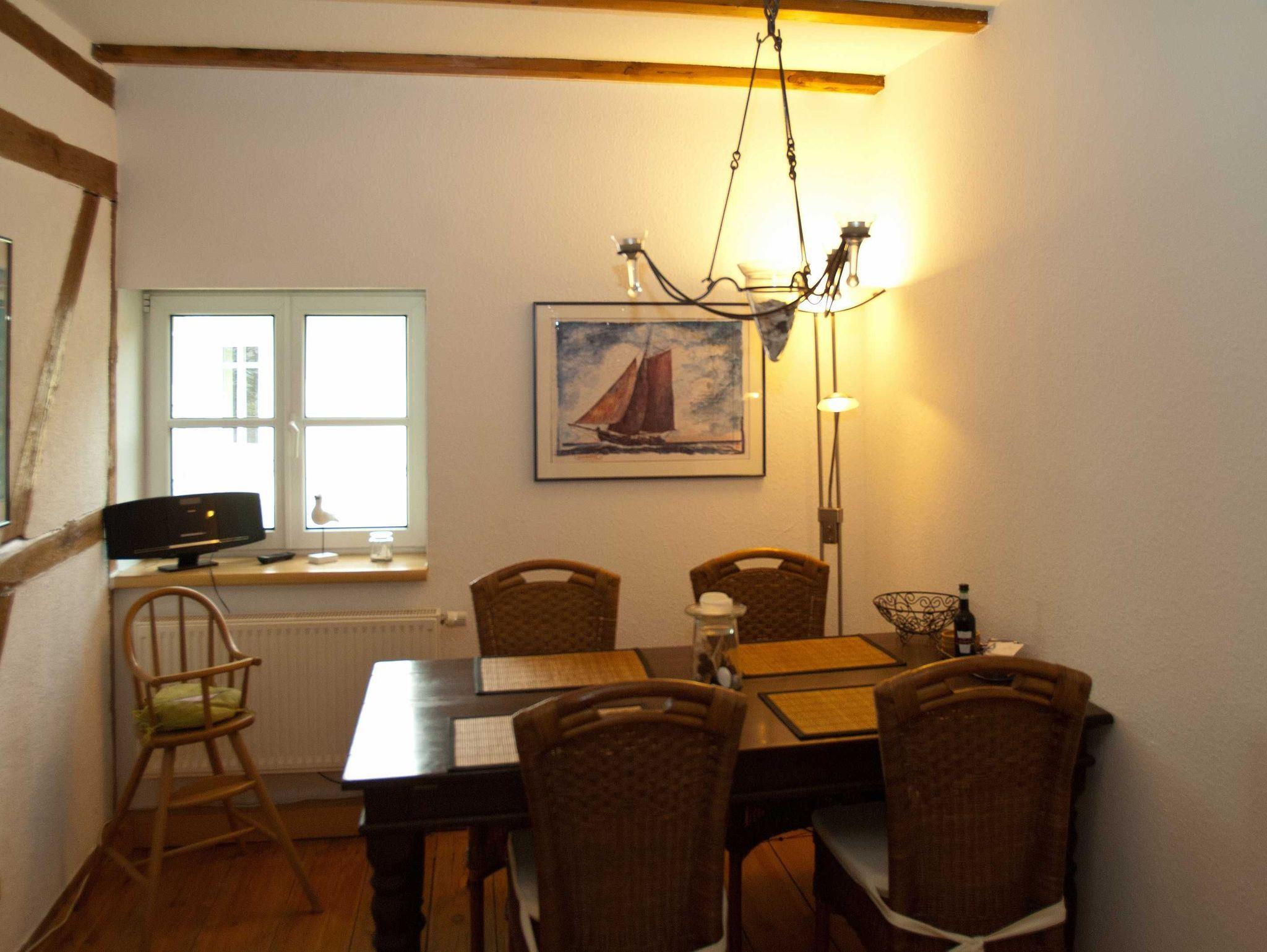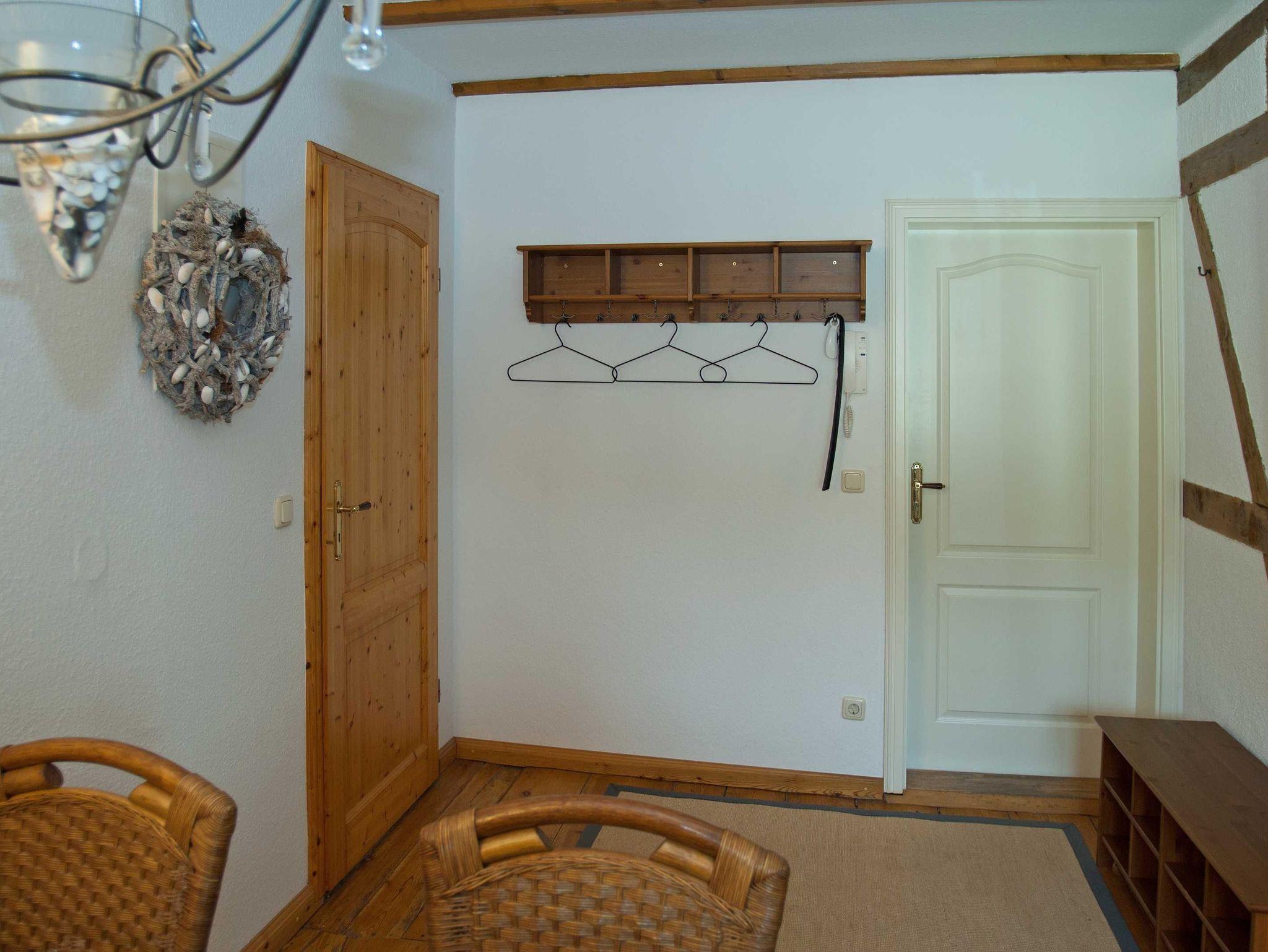 Als Gast erwartet Sie ein Schlafzimmer, ein Wohnzimmer, eine romantische Essdiele mit einem großen Tisch, Küche und Bad. Das geräumige Badezimmer wurde 2022 modernisiert und hat jetzt einen fußbodenebenen Eintritt in die Dusche. Alle Zimmer haben Fenster, vom Bad und aus der Küche können Sie direkt auf vorbeifahrende Schiffe und die Ostsee schauen.