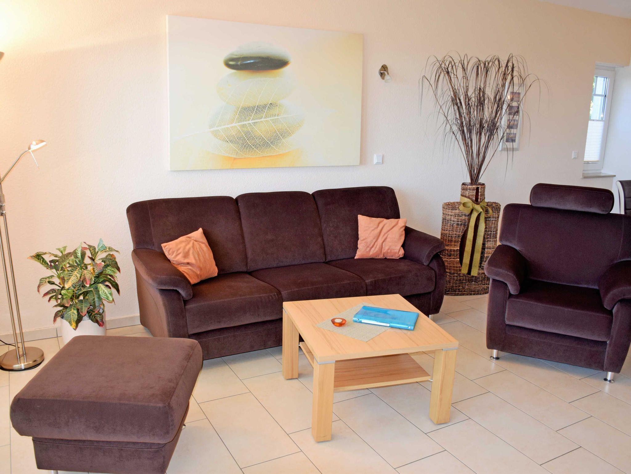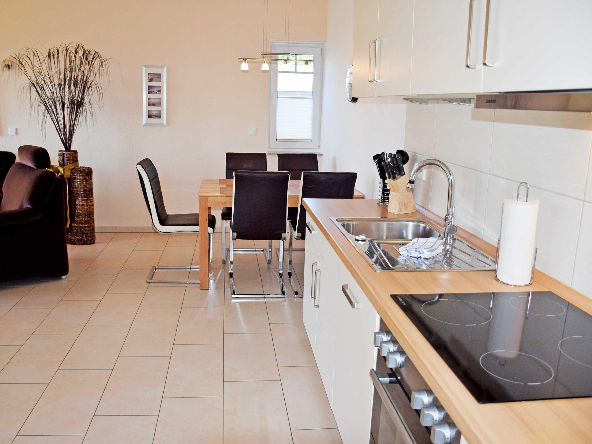 - komfortable, sehr schön und modern gestaltete 3-Raum-Ferienwohnung (Wohnbereich mit Fliesen, Schlafbereich mit Parkett)