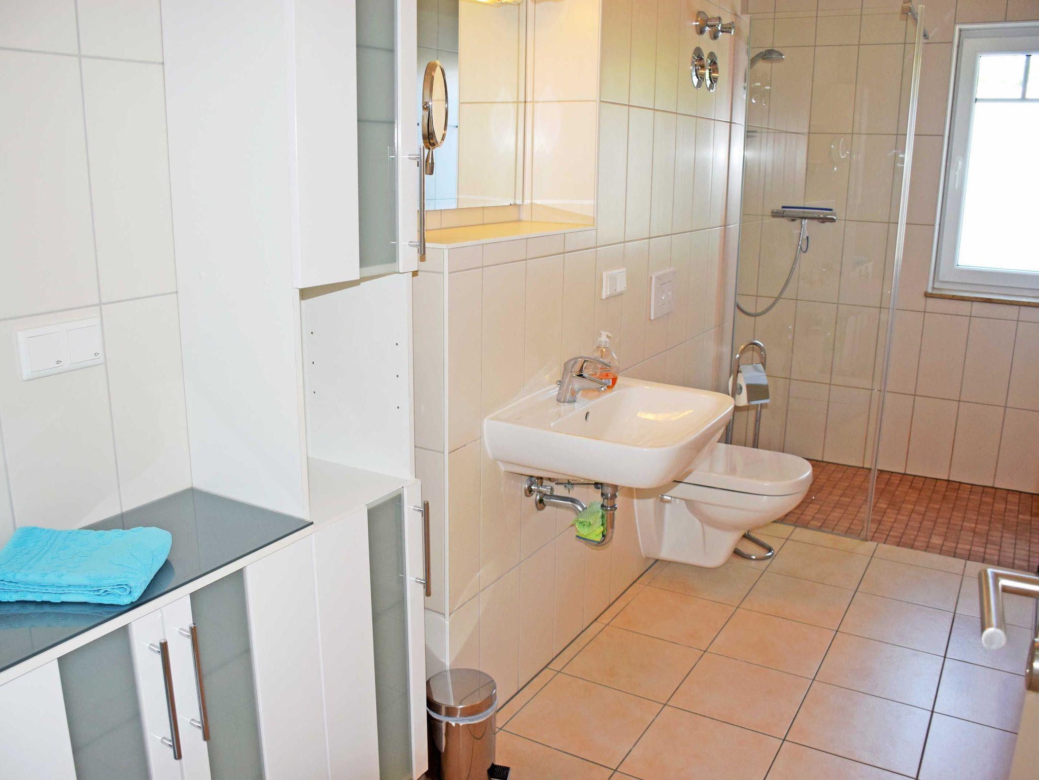 - Bad mit ebenerdiger Dusche, WC und Badmöbeln sowie Tageslicht,