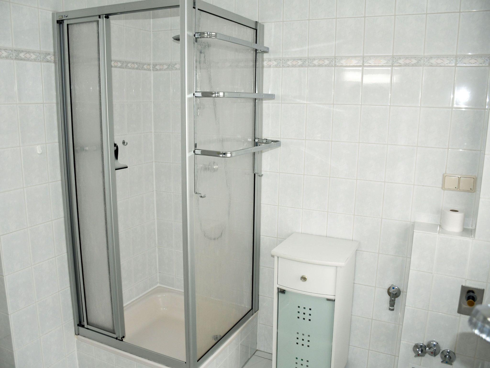 * 1 Bad mit Dusche, Badewanne, WC, 1 Waschbecken, 1 Spiegel (mit Fenster)