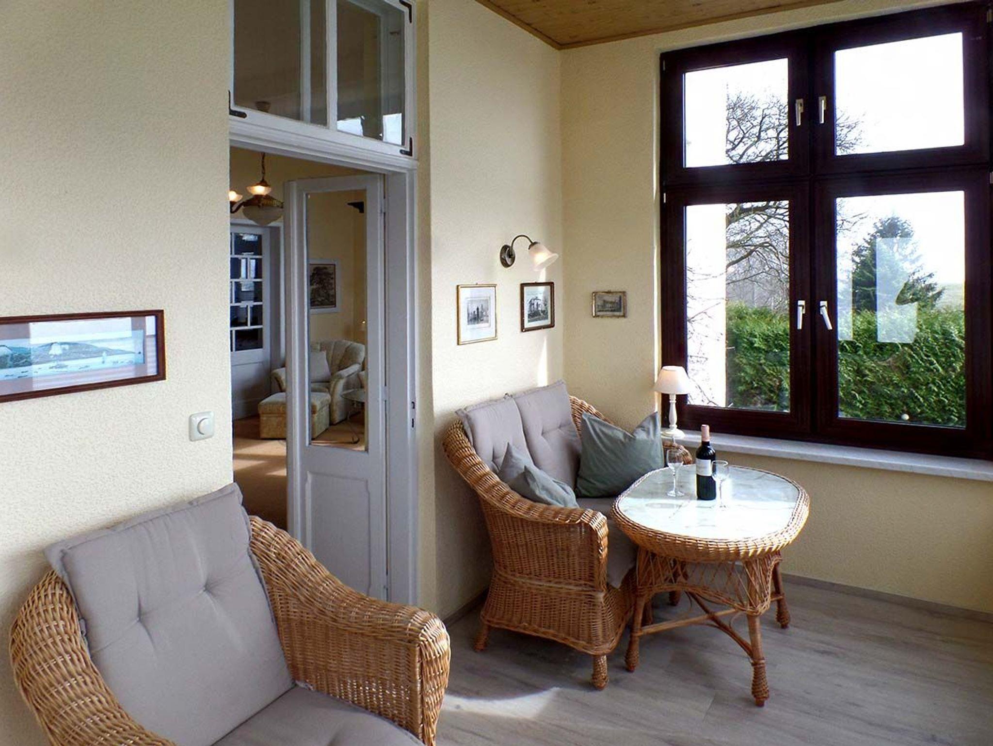 • Verandazimmer mit Korbmöbel, Ostsee- und Mönchgutblick