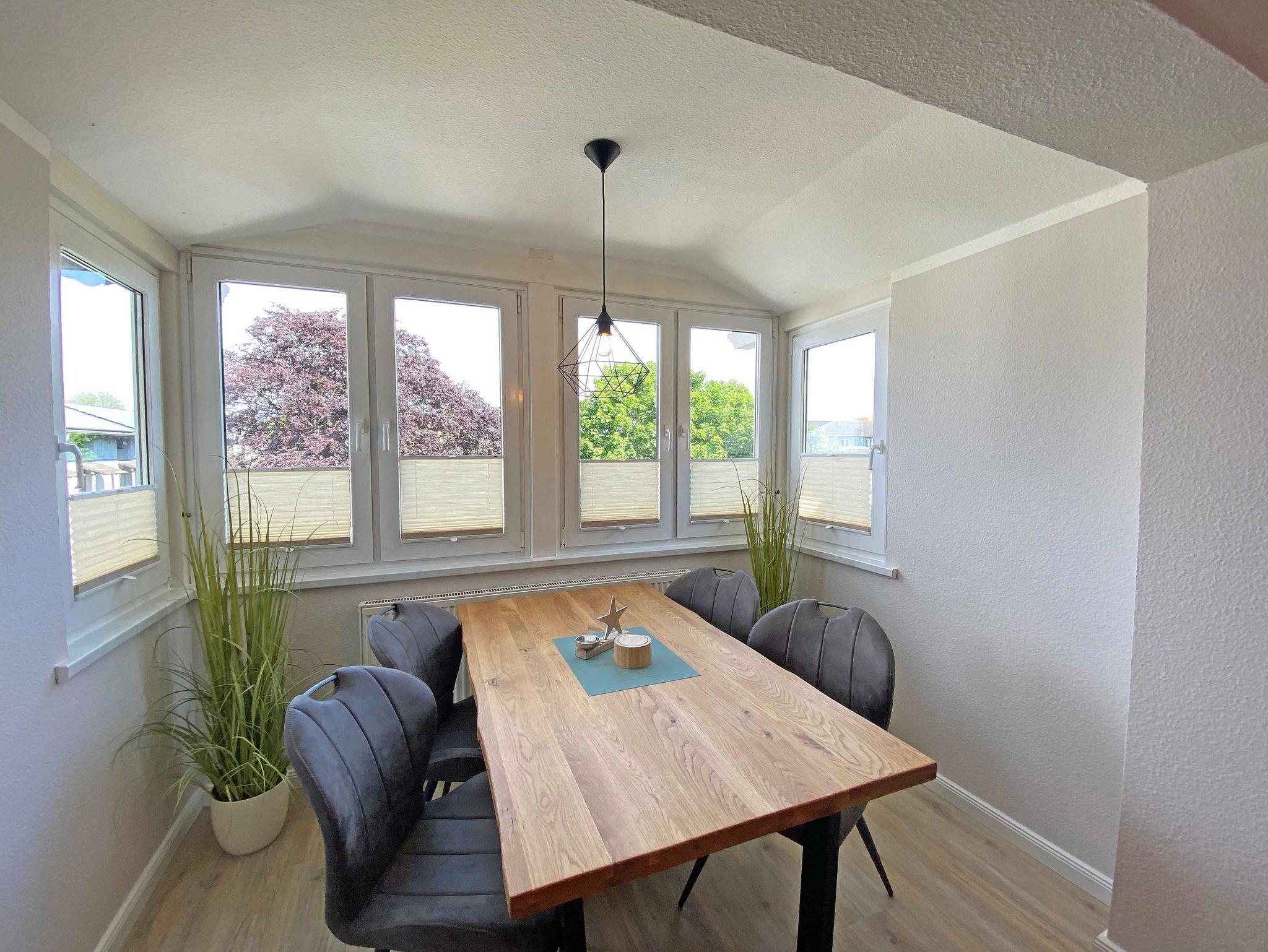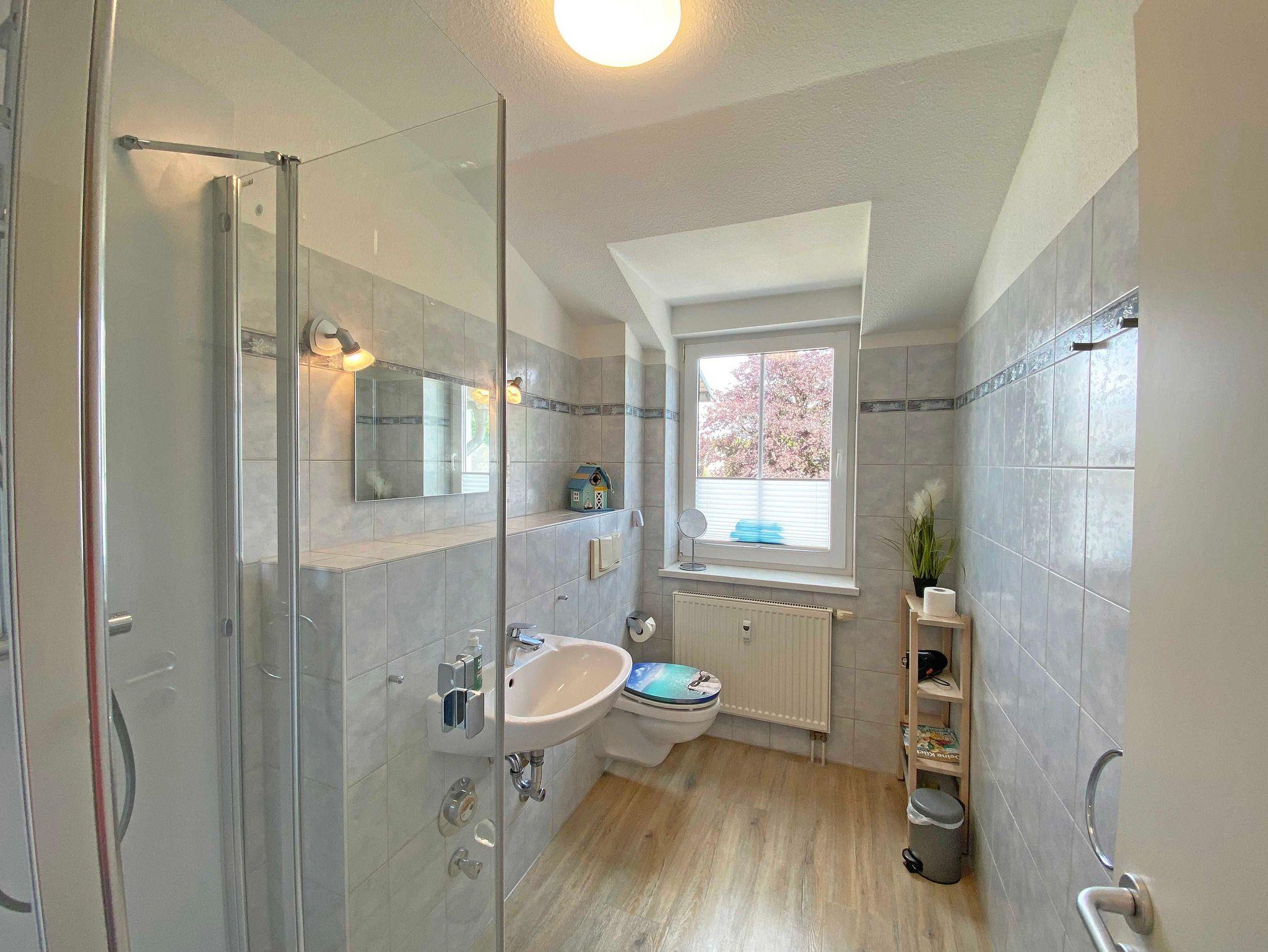Die komfortabel eingerichtete geräumige Nichtraucherwohnung mit ca. 59 qm verfügt über ein großes Wohnzimmer mit offenem Küchenbereich und einem geschlossenen Balkon/Veranda. Sie bietet ausreichend Platz für 2 bis 4 Erwachsene + 1 Kleinkind bis 3 Jahre im Kinderreisebett und befindet sich im 2. OG. Sie erwartet ein heller und freundlicher Designboden in allen Räumen. Eine gemütliche Kombination mit Couch, Couchtisch, Leselampe, Sessel und Hocker sorgen für individuelle Sitz ? und Relax Möglichkeiten nach einer langen Strandwanderung oder einem Waldspaziergang. Zur komfortablen Ausstattung gehören selbstverständlich ein Lowboard, Smart-TV, ein Blu-Ray Player und eine Teufel-Musikanlage mit Radio, DAB-Radio, CD-Spieler, USB-Anschluss und Bluetooth sowie einen WLAN-Anschluss für die Verbindung zu Ihrem Mobiltelefon, Tablet oder Notebook. Ein Elektrokamin im Wohnbereich lädt dazu ein, die kühleren Abende in wohliger Stimmung bei einem Glas Wein oder Rum ausklingen zu lassen. In der hellen Veranda ist der Essbereich platziert, so dass Sie schon beim Frühstück den herrlichen Blick über die Dächer von Göhren genießen können sowie auf die Ostsee. Angrenzend zum Wohnbereich befindet sich die vollausgestattete Küchenzeile mit Geschirrspüler, Toaster, Wasserkocher, Kaffeemaschine, 4 Zonen-Kochfeld, Backofen, integrierter Mikrowelle, Kühl-Gefrierkombination und hochwertiger Granitarbeitsflächen, welche Ihnen einen ansprechenden Komfort zur unabhängigen Selbstverpflegung bietet. Im größeren Schlafzimmer mit einem Boxspringbett (1,80m x 2,00m), Nachtischablagen, Kleiderschrank und Smart-TV träumen Sie von Wellen, Sand und Natur. Im kleineren Schlafzimmer befindet sich ebenfalls ein Boxspringbett mit durchgehender Matratze (1,60m x 2,00m) und ein Kleiderschrank. Für einen ruhigen Schlaf sorgen Verdunklungsplissees und Vorhänge. Das Tageslicht-Bad verfügt über eine Dusche mit flachem Einstieg, mit WC, einem Fön, einem Kosmetikspiegel und einen Waschtisch. Eine liebevolle Einrichtung im maritimen Stil rundet das Erscheinungsbild des Ferienapartments ab. Ein Haustier kann gegen eine Gebühr dazu gebucht werden. Im Keller des Hauses können Sie eine Waschmaschine sowie ein Trockner gegen Gebühr nutzen. Natürlich steht Ihnen ein separater Parkplatz (Nr.08) auf dem Hof des Grundstückes zur Verfügung. Ausreichend Abstellmöglichkeiten in einem separaten abschließbaren Raum neben dem Parkplatz für E-Bikes, Fahrräder, Surfbrett etc. sind vorhanden. Die Erstausstattung eines Wäschepaketes (komplette Bettwäsche, 1 Duschhandtuch, 2 kleine Handtücher) können Sie bis 14 Tage vor Anreise gegen einen Aufpreis dazu buchen oder durch eigene ergänzen. Ab 2 gebuchten Paketen erhalten Sie einmalig 1 Geschirrhandtuch und 1 Duschvorleger hinzu.