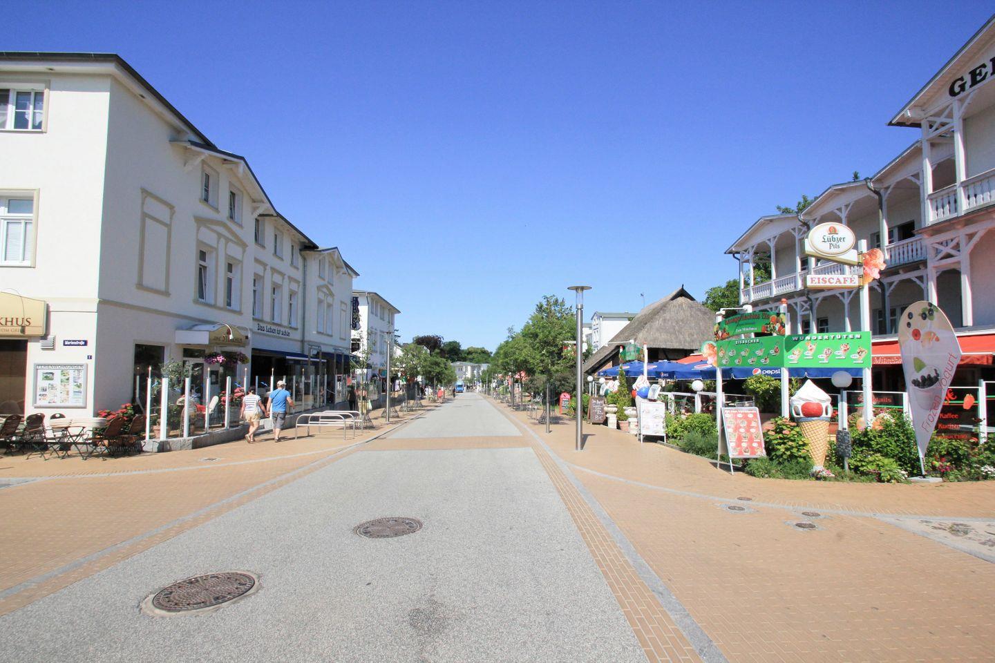 Gelegen in einer Seitenstraße des Ostseebad Göhren, findet man hier Ruhe und Entspannung. Jedoch sind Sie nach nur wenigen Metern Fußweg mitten im Geschehen. In ca. 50-100m erreicht man den Ortskern, wo man zwischen vielen netten Restaurants und Cafés die Wahl hat. Auf der Flaniermeile des Ortes ist immer etwas los, eine schöne Atmosphäre ganz besonders zur Abenddämmerung. Genehmigen Sie sich in einem der Cafés oder Bars einen spritzigen Cocktail im „Globetrotter“, ein Gläschen Wein in der „Vinothek“ oder schlendern Sie mit einem leckeren Eis hinunter zum Strand und atmen die erfrischende Seeluft ein.