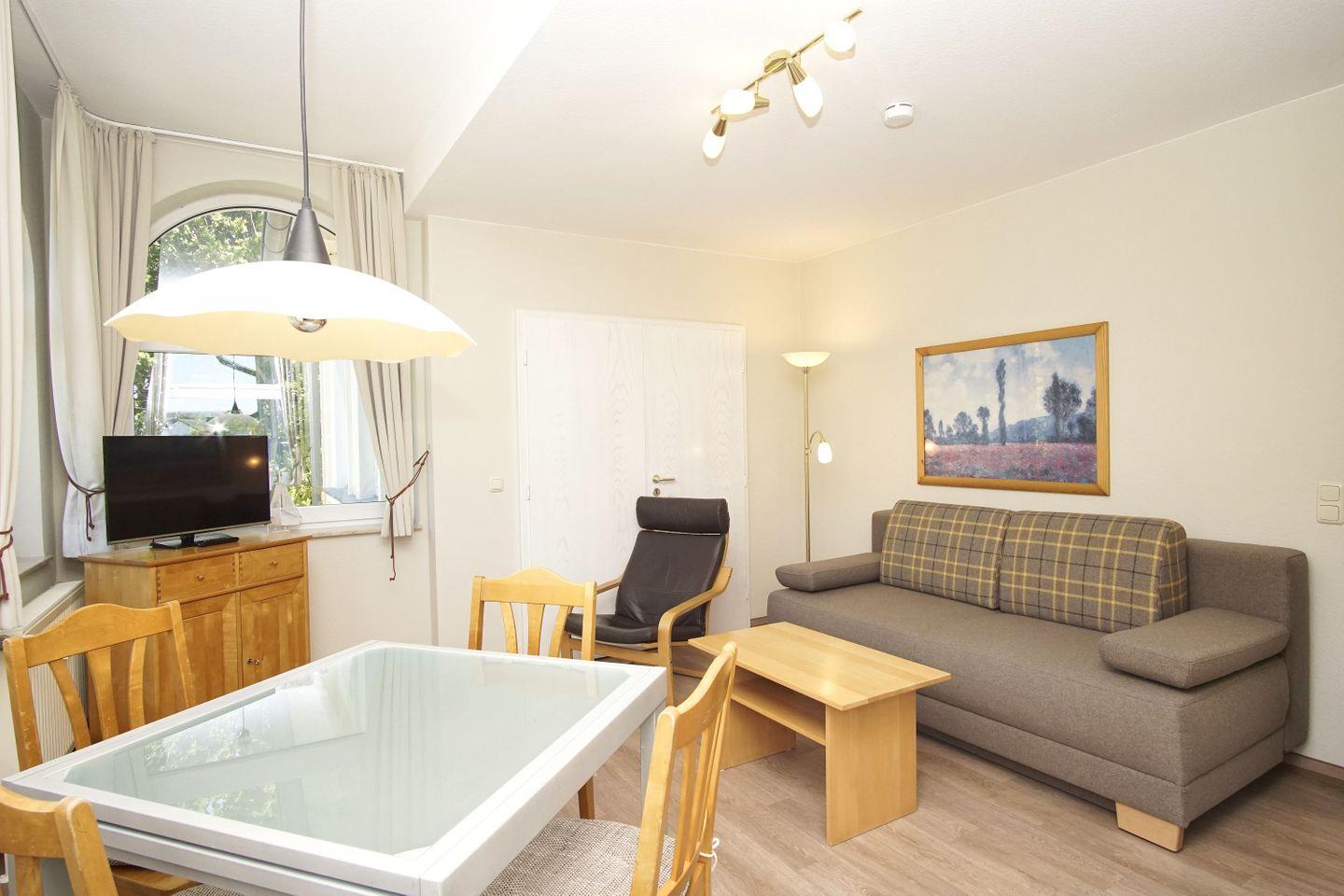 WOHNEN // Wohnraum mit Essbereich, Sitzgarnitur mit bequemer Schlafcouch, Kabel-TV ++