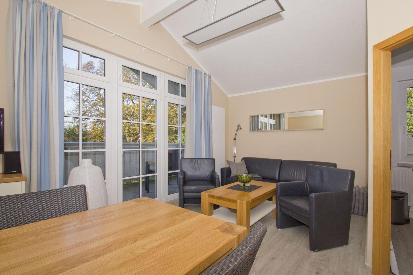 WOHNEN // Wohnraum mit Essbereich, Esstisch mit 5 Stühlen, Sitzgarnitur, Couch mit Schlaffunktion, Kabel-TV, Radio, CD-Player ++
