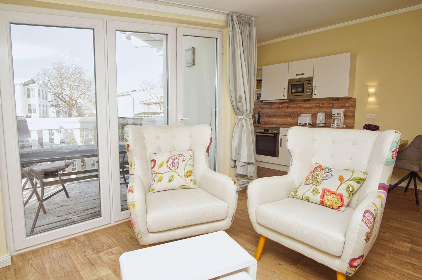 Die Ferienwohnungen in den Meeresblick Residenzen sind nicht nur großzügig geschnitten und komfortabel eingerichtet, sie verfügen darüber hinaus zumeist über eine traumhafte Aussicht über Südost Rügen und die weite Ostsee.