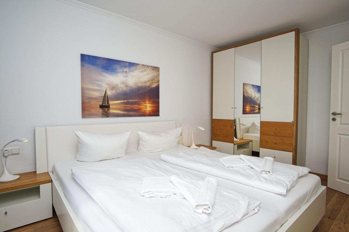 SCHLAFEN // ein Schlafzimmer mit bequemem Doppelbett, bequeme Schlafcouch im Wohnbereich (s.o.) ++