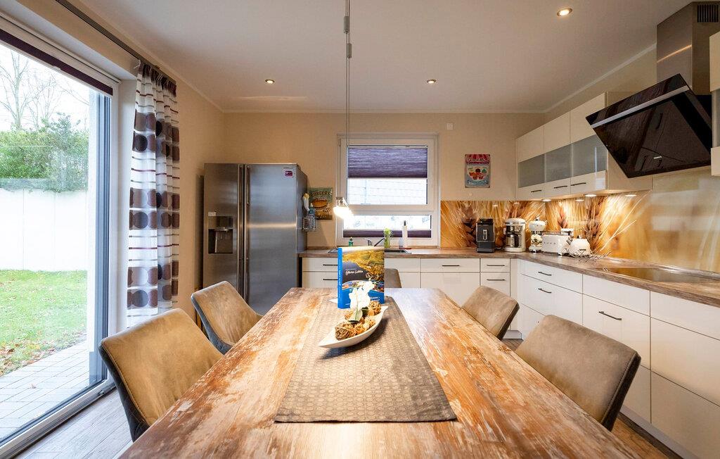 Dit feriehus ligger i Göhren-Lebbin, i hjertet af det idylliske Mecklenburgske Sødistrikt. Spil en runde golf på Fleesensee Golfklub, udforsk Fleesensee-søen med båd eller besøg de charmerende byer Malchow og Waren. Oplev cykel- og vandrestier gennem uberørt natur eller nyd kulinariske lækkerier på nærliggende restauranter.