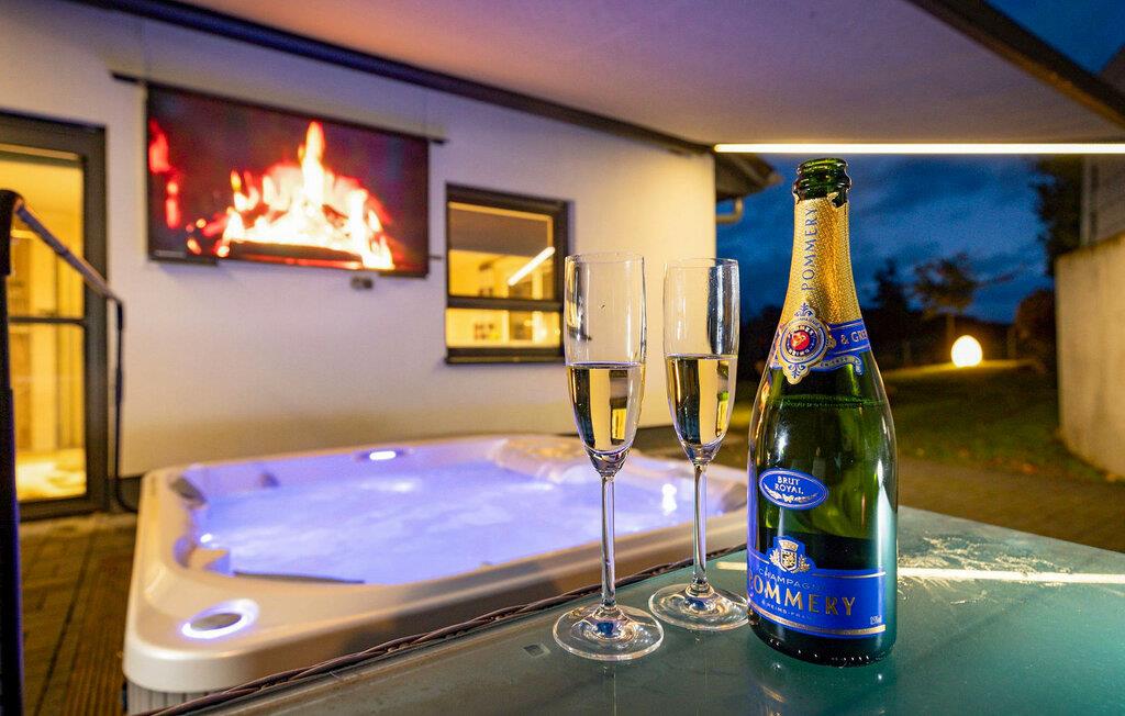 Træd ud på terrassen og tag en dyb indånding. Nyd det udendørs spabad, mens I ser solnedgangen eller en film på den udendørs skærm. Skål med et glas mousserende vin, og afslut dagen på en afslappet måde. Den velholdte have tilbyder masser af plads til at tilbringe tid sammen udendørs eller nyde rolige øjeblikke alene.