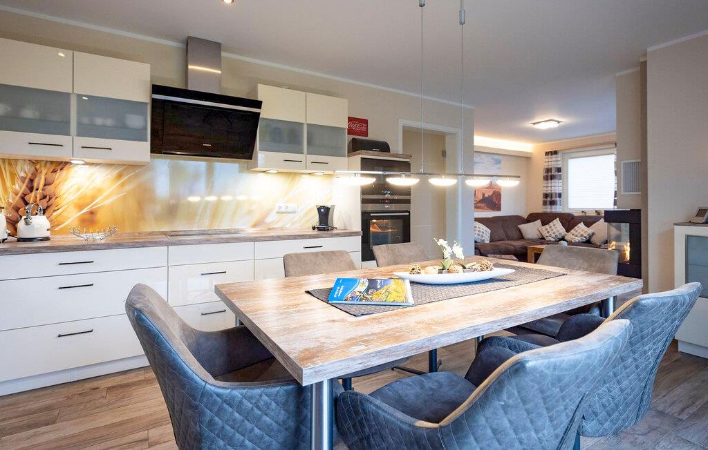 Oplev uforglemmelige dage i dette luksuriøse feriehus, der kombinerer moderne komfort med en hyggelig atmosfære. Træd ind i den store opholdsstue og bliv budt velkommen af ??den varme atmosfære. Find jer til rette i den behagelige sofa, nyd pejsen og se en film på det store tv. Tilbered jeres yndlingsmåltider i det åbne, fuldt udstyrede køkken, mens I nyder udsigten over haven. Et stort spisebord og et stilfuldt design skaber de ideelle rammer for fælles måltider. Læn jer tilbage i den private sauna.