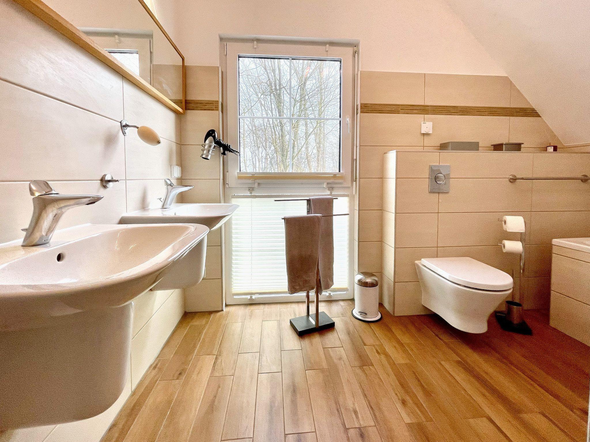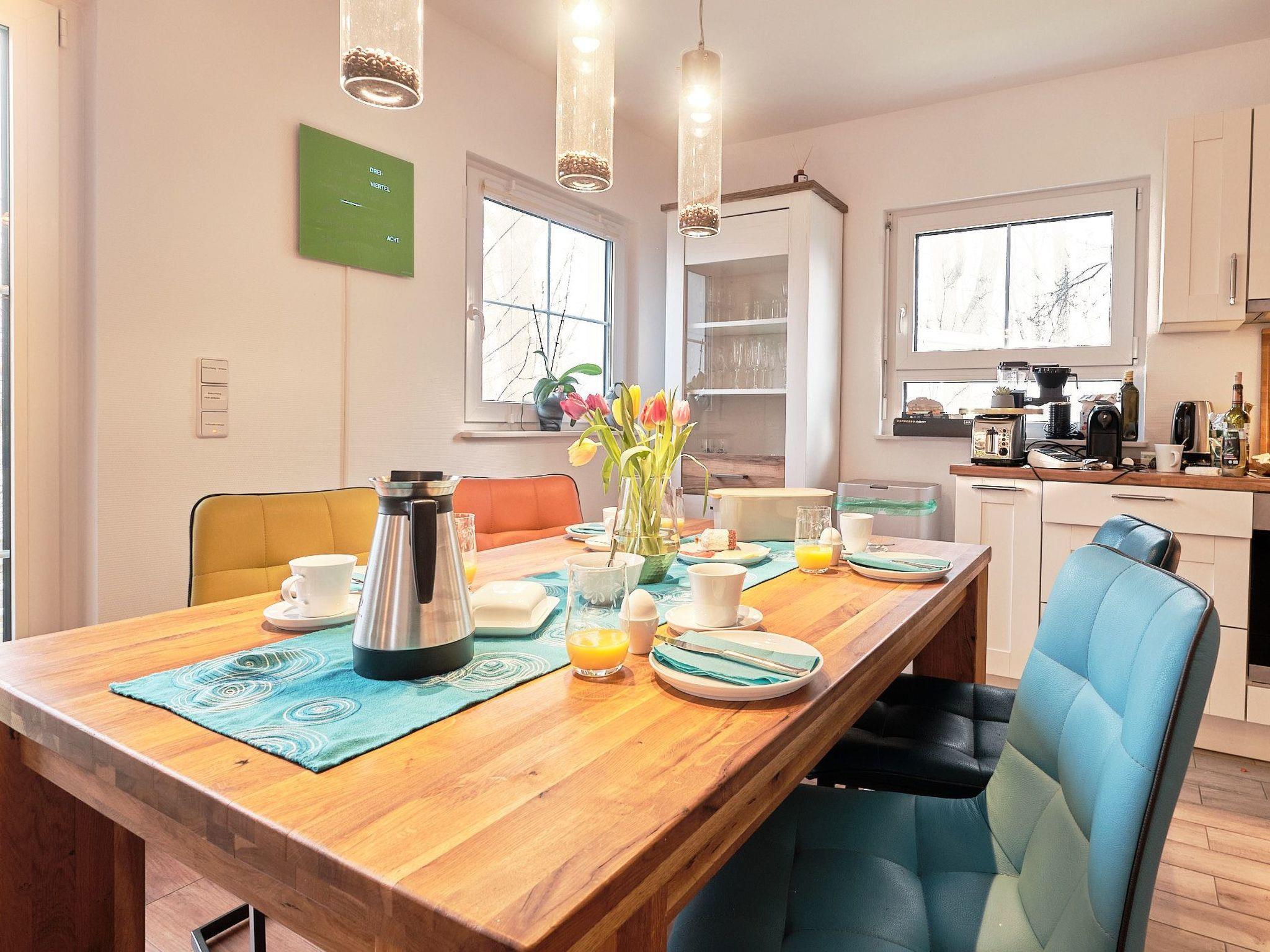 The airy, open-plan ground floor offers space for cooking, eating and relaxing together and, with pre-installed streaming subscriptions (Netflix and Prime Video), also provides the perfect backdrop for evening entertainment. Practical amenities such as our children's equipment (step, toilet seat, high chair, cot, toys and children's crockery) ensure carefree holidays for families with children.