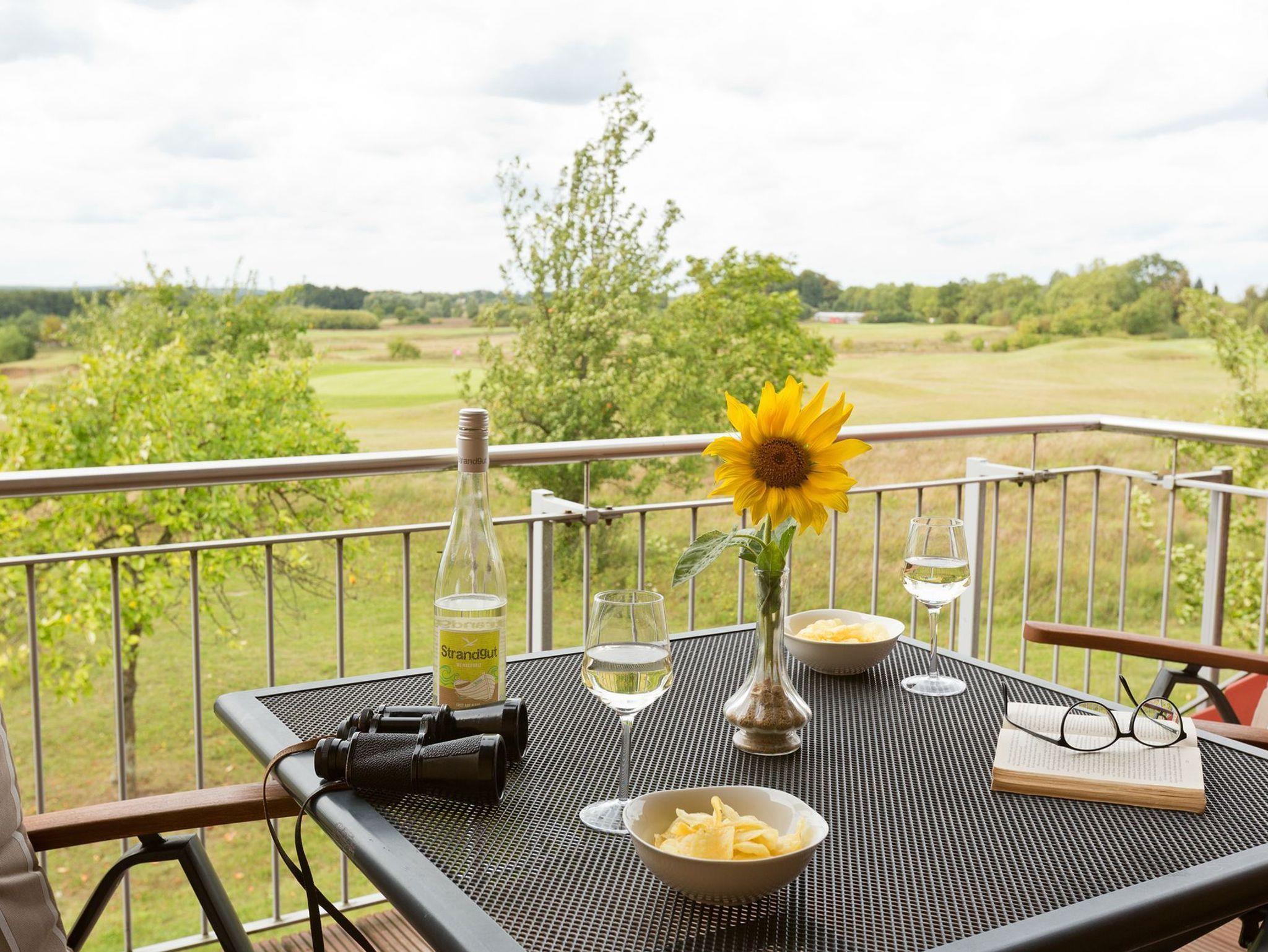 Die Ferienwohnung 64qm direkt am Golfplatz gelegen, mit 2 Schlafzimmer für max. 4 Personen befindet sich im 1 OG rechts. Tageslichtbad, Balkon und mit Vollausstattung ist eine Nichtraucherwohnung wo Haustiere erlaubt sind. Inklusive Verbrauchskosten, PKW Stellplatz, abschließbarer Hütte für Fahrräder.