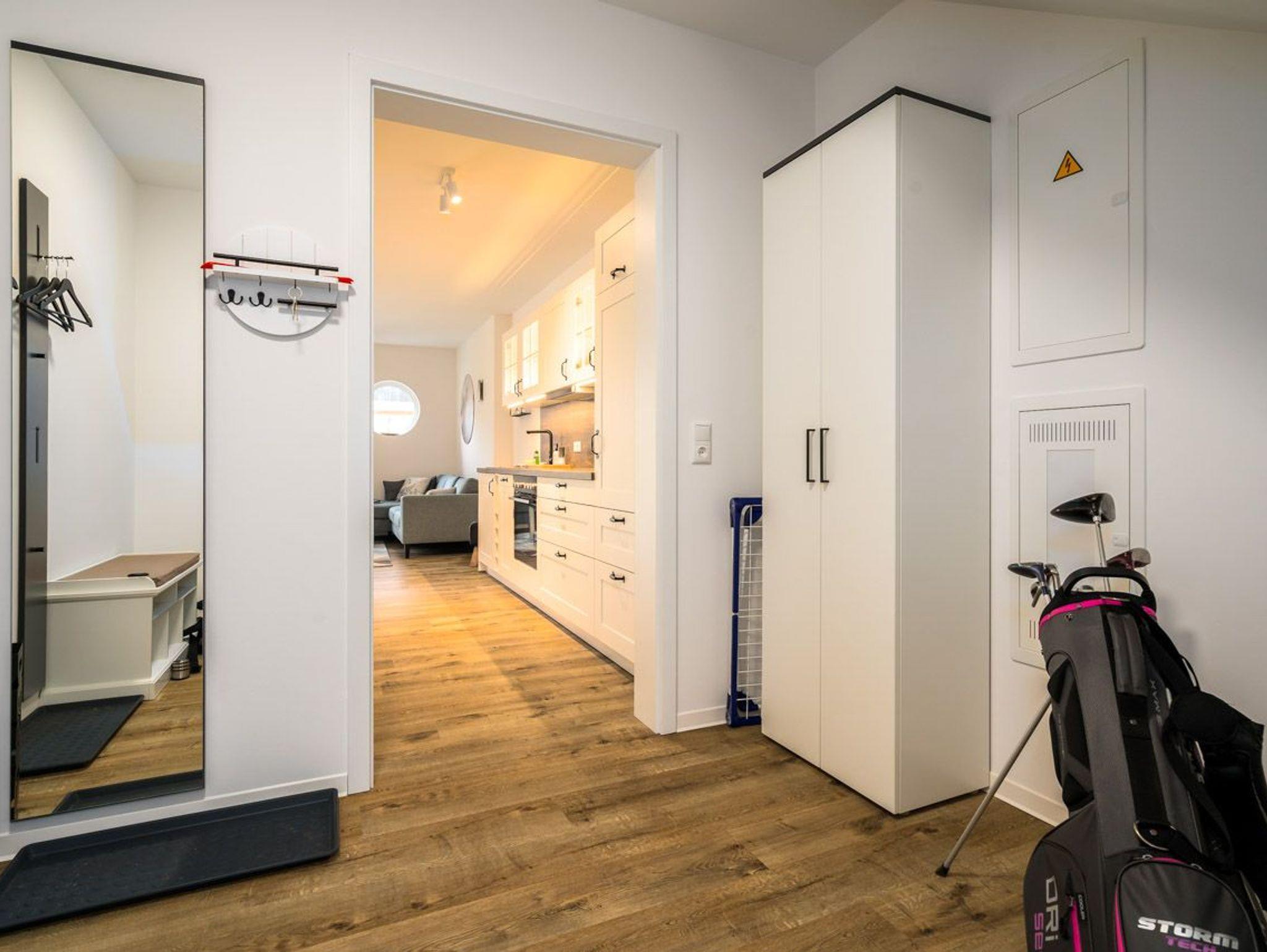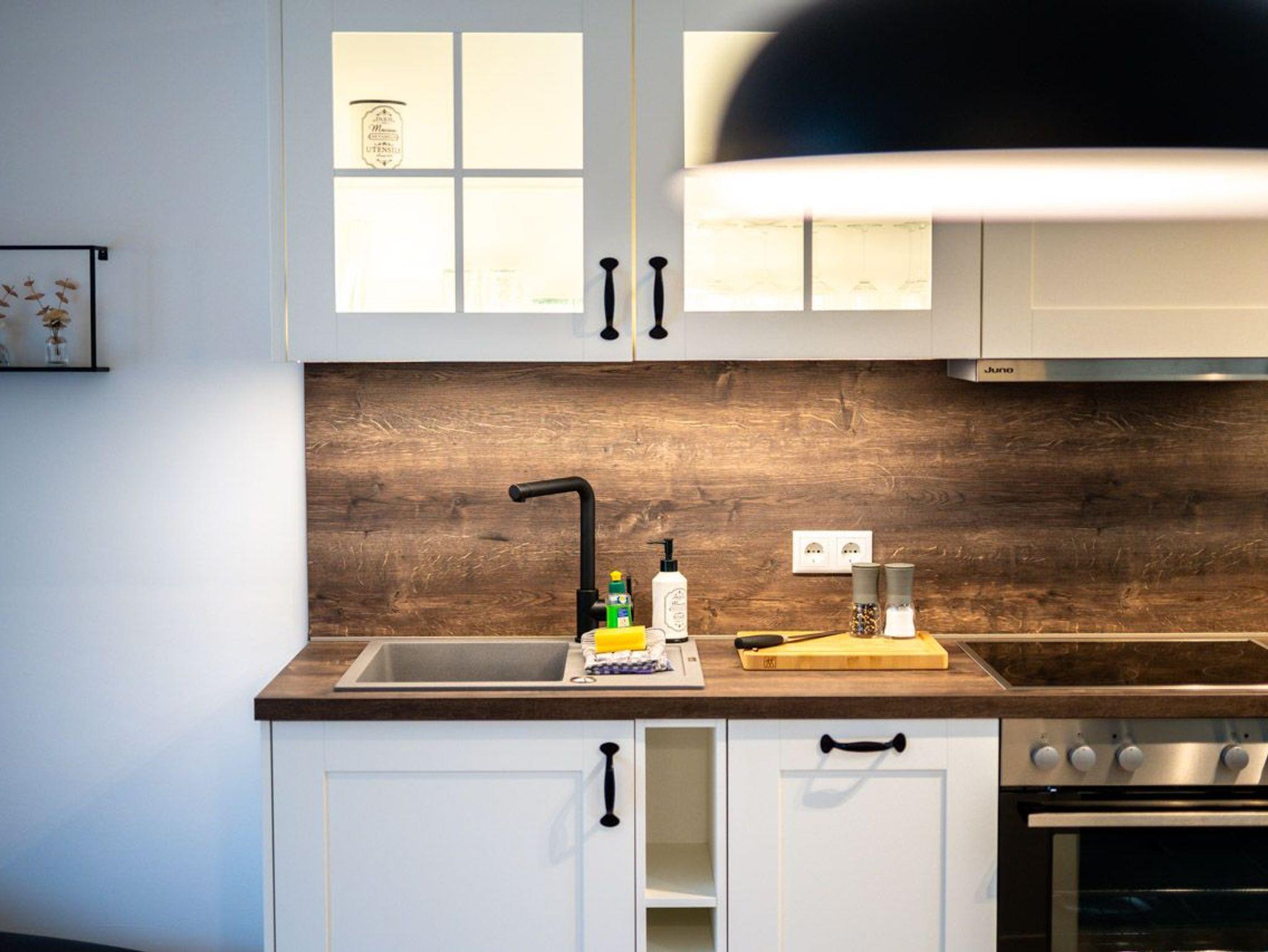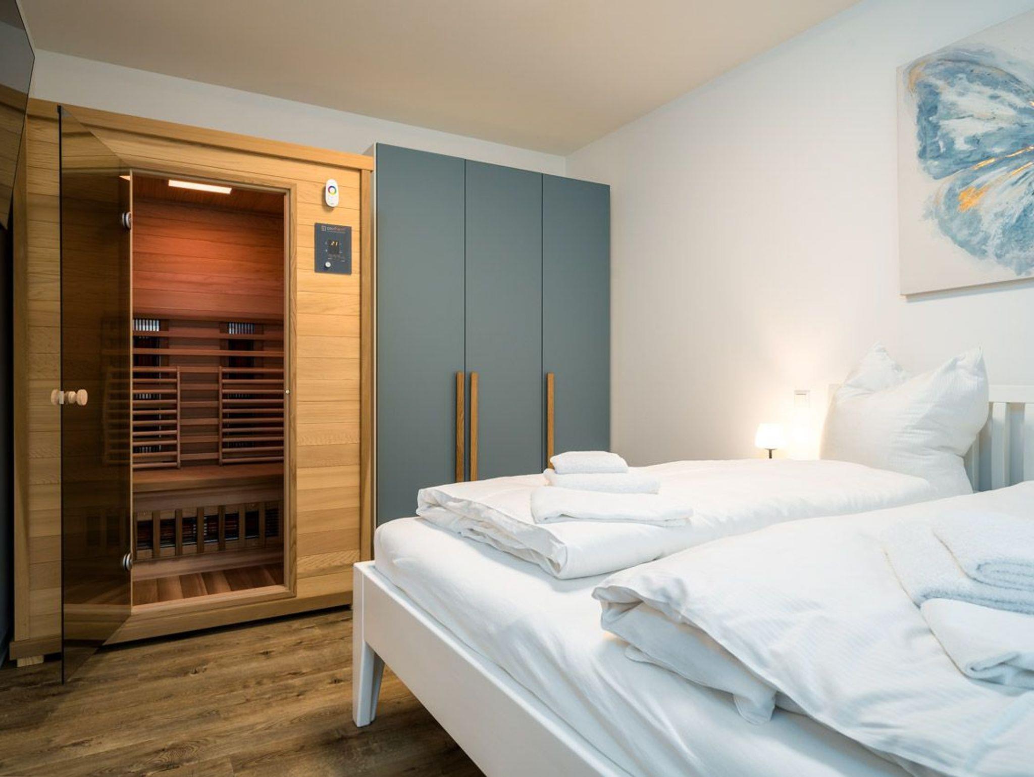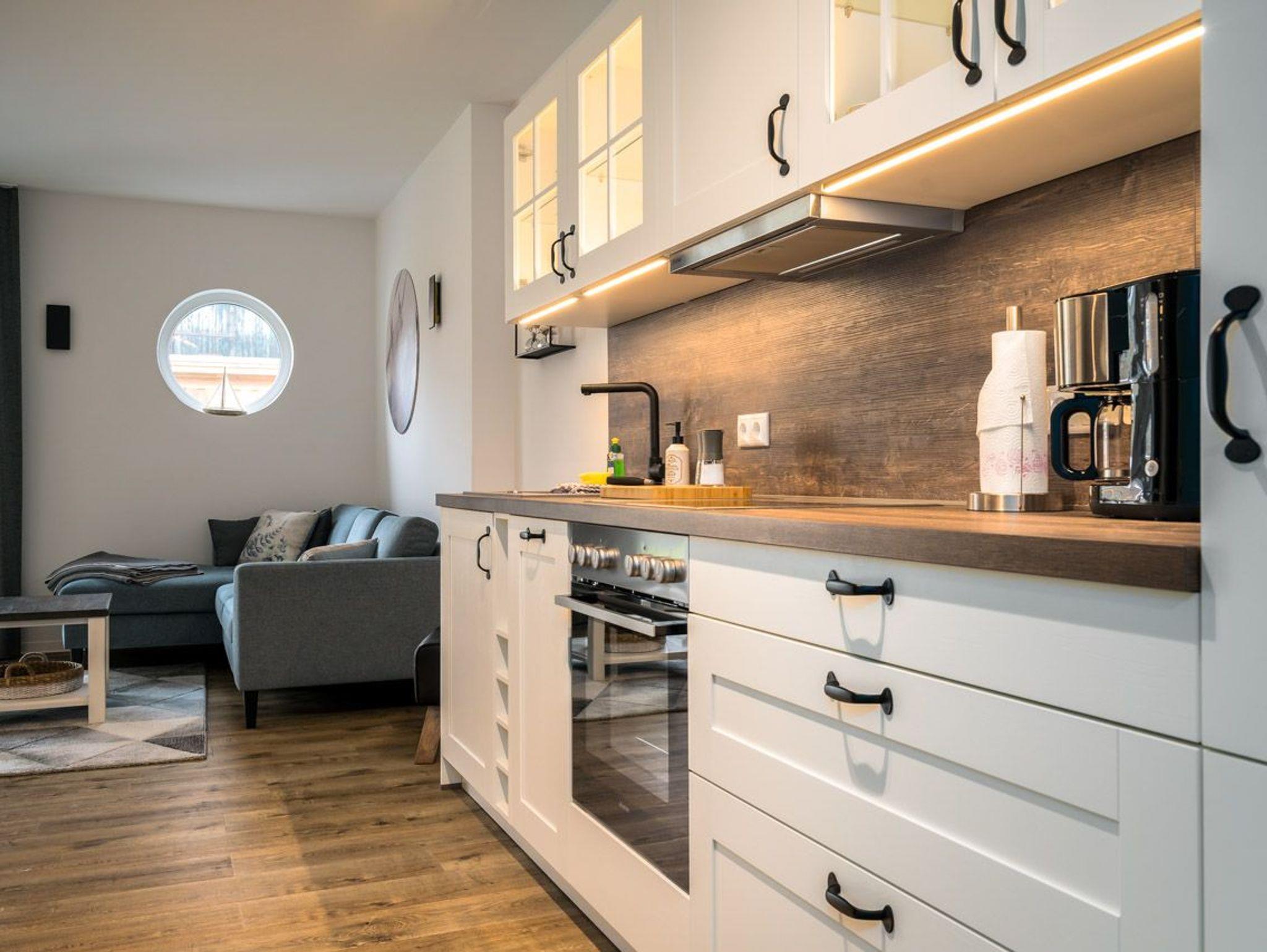 Diese Wohnung ist nicht nur gemütlich, sondern bietet auch zahlreiche Annehmlichkeiten für einen entspannten Aufenthalt. Die offene Küche ist funktional ausgestattet und bietet alles, was Sie für die Zubereitung köstlicher Speisen benötigen. Das Schlafzimmer mit einer Infrarot-Sauna ist ein perfekter Ort, um sich nach einem erlebnisreichen Tag zu entspannen. Das angrenzende Badezimmer mit Dusche sorgt für Komfort und Wohlbefinden. Der offene Wohn- und Essbereich schafft einen einladenden Raum.
