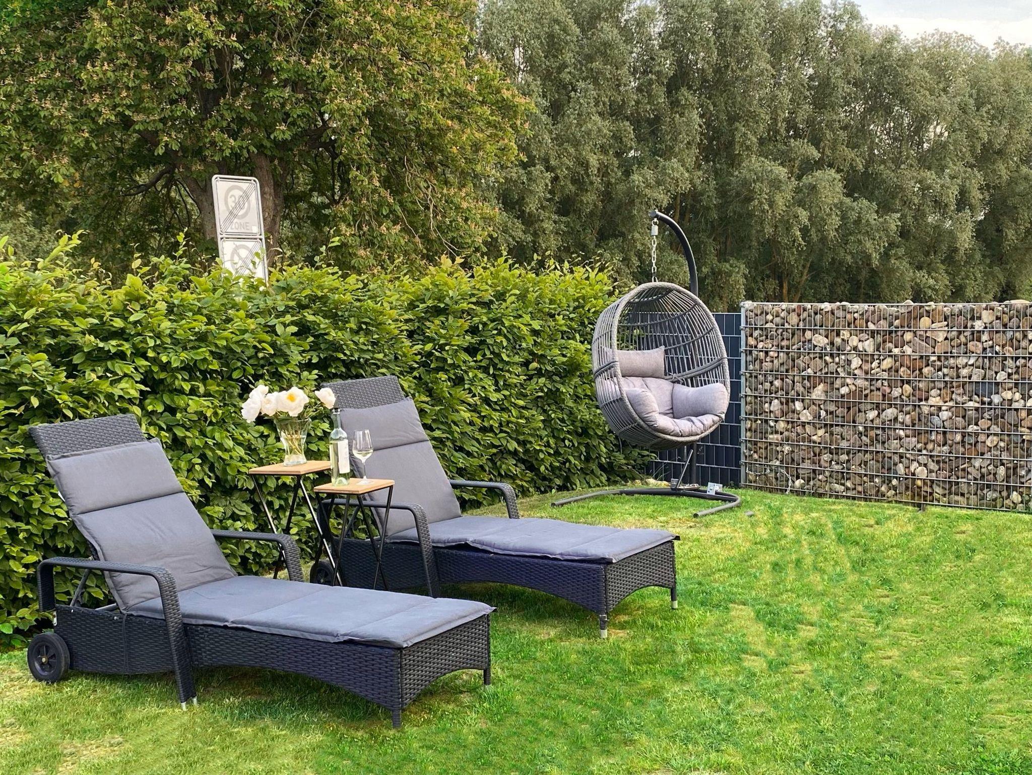Entspannen Sie auf 2 Sonnenliegen im Garten. Ein Holzkohlegrill steht für kulinarische Grillvergnügen zur Verfügung.