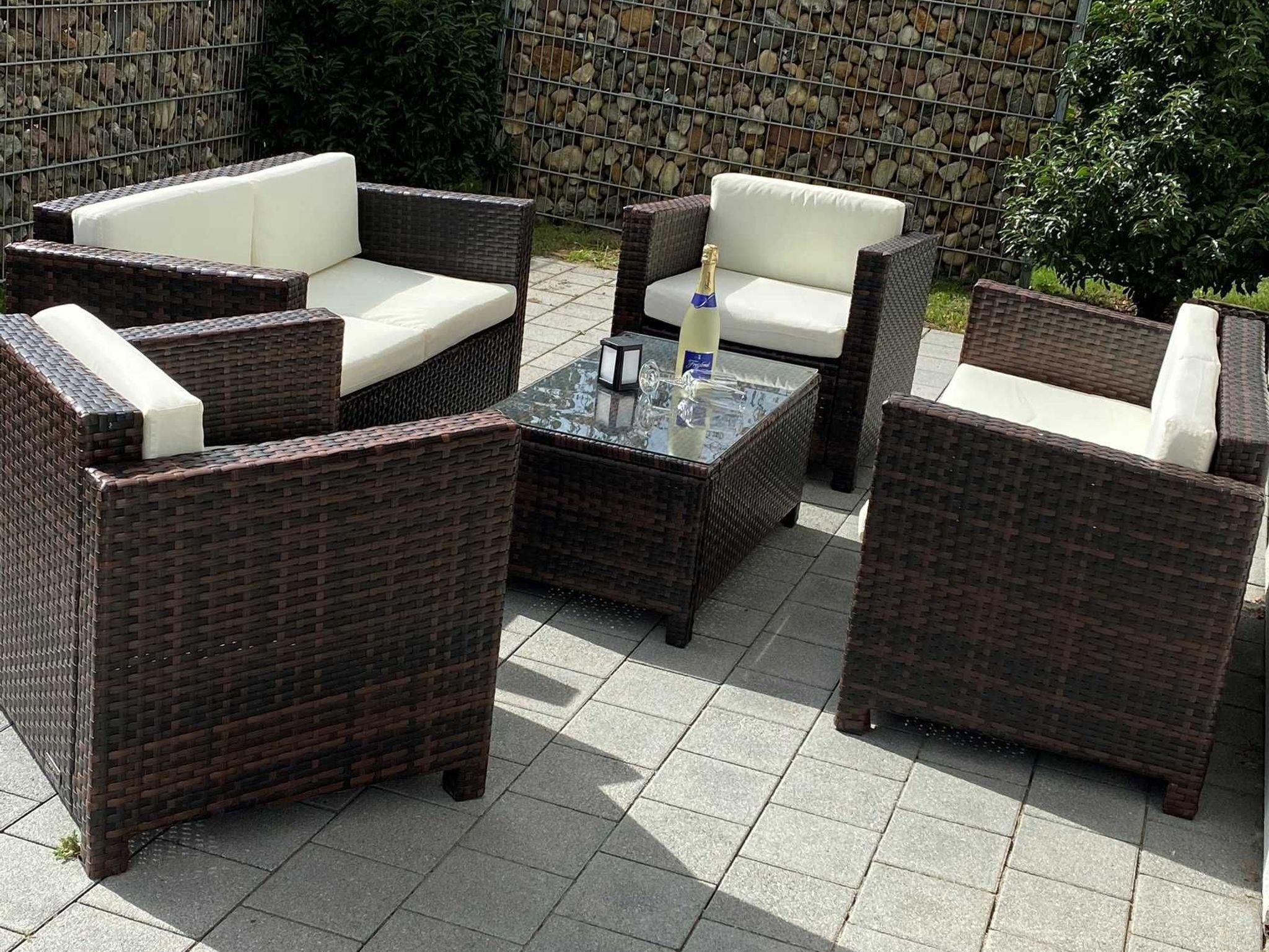 - Hochwertige Gartenmöbel (Haupt-Terrasse: Gartentisch, 6 Stühle, 2