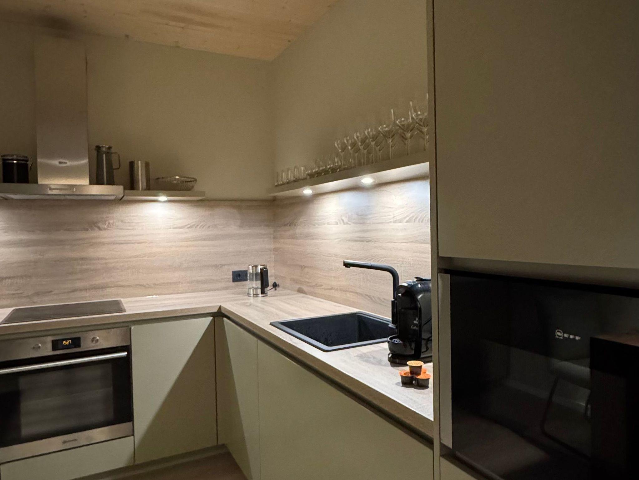 • Voll ausgestattete Küche mit Kaffee- und Espressomaschine, Toaster, Wasserkocher, Eierkocher und weiteren praktischen Geräten