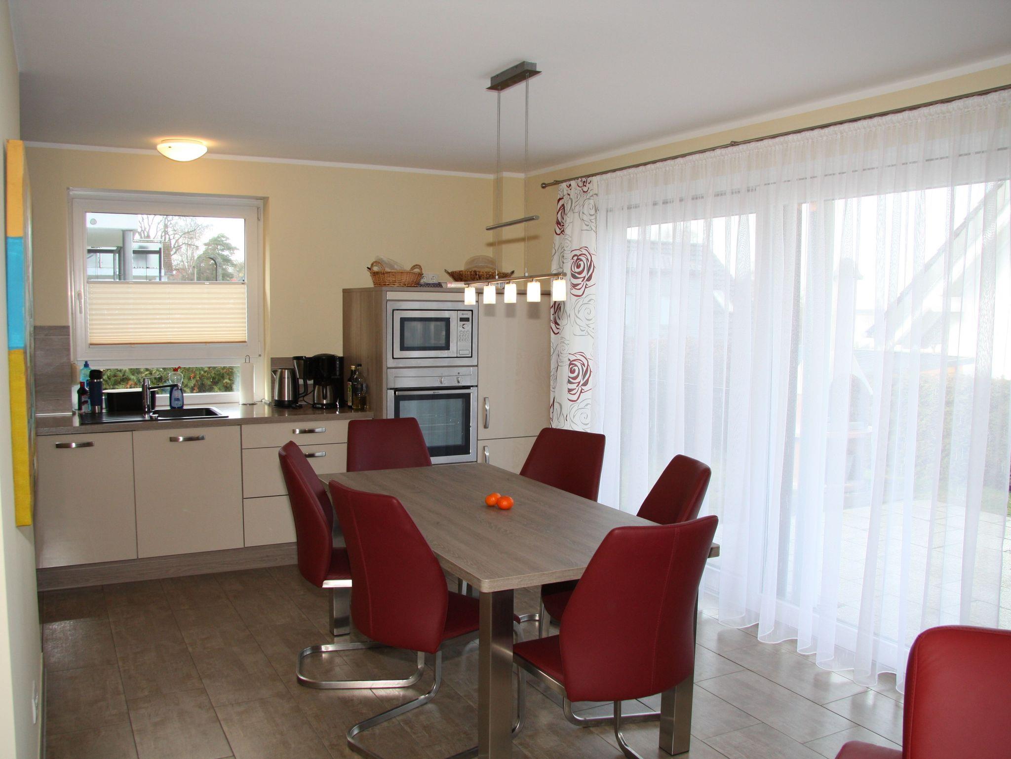 Das Ferienhaus Residenz am See, liegt nur 50 m vom Fleesensee entfernt und bietet Ihnen hohen Wohnkomfort auf ca. 145 m². Genießen Sie bei uns einen wunderbar erholsamen Urlaub. Im Erdgeschoss befindet sich der großzügig gestaltete Wohn-Essbereich mit offener Küche. Im Wohnraum finden Sie eine große Couch sowie einen per Knopfdruck steuerbaren Gaskamin für wohlige Wärme und eine gemütliche Atmosphäre. Ebenso ist der Raum ausgestattet mit einem DVD-Player, Hi-Fi Anlage, Sat TV. Für gemütliche Abende haben wir einige Bücher, DVDs und Spiele für Sie bereitgestellt. Der Essbereich verfügt über einen Tisch und Sitzgelegenheiten für 6 Personen. Als Service erhalten Sie, soweit verfügbar, als kostenfreie Leistung W-Lan.(Glasfaseranschluss). Es wird eine Kaution in Höhe von 200 fällig. Diese ist bei der Restzahlung zu leisten und wird nach Prüfung der Endreinigung zurückerstattet. Die Kurtaxe ist ebenfalls mit der Restzahlung zu entrichten.