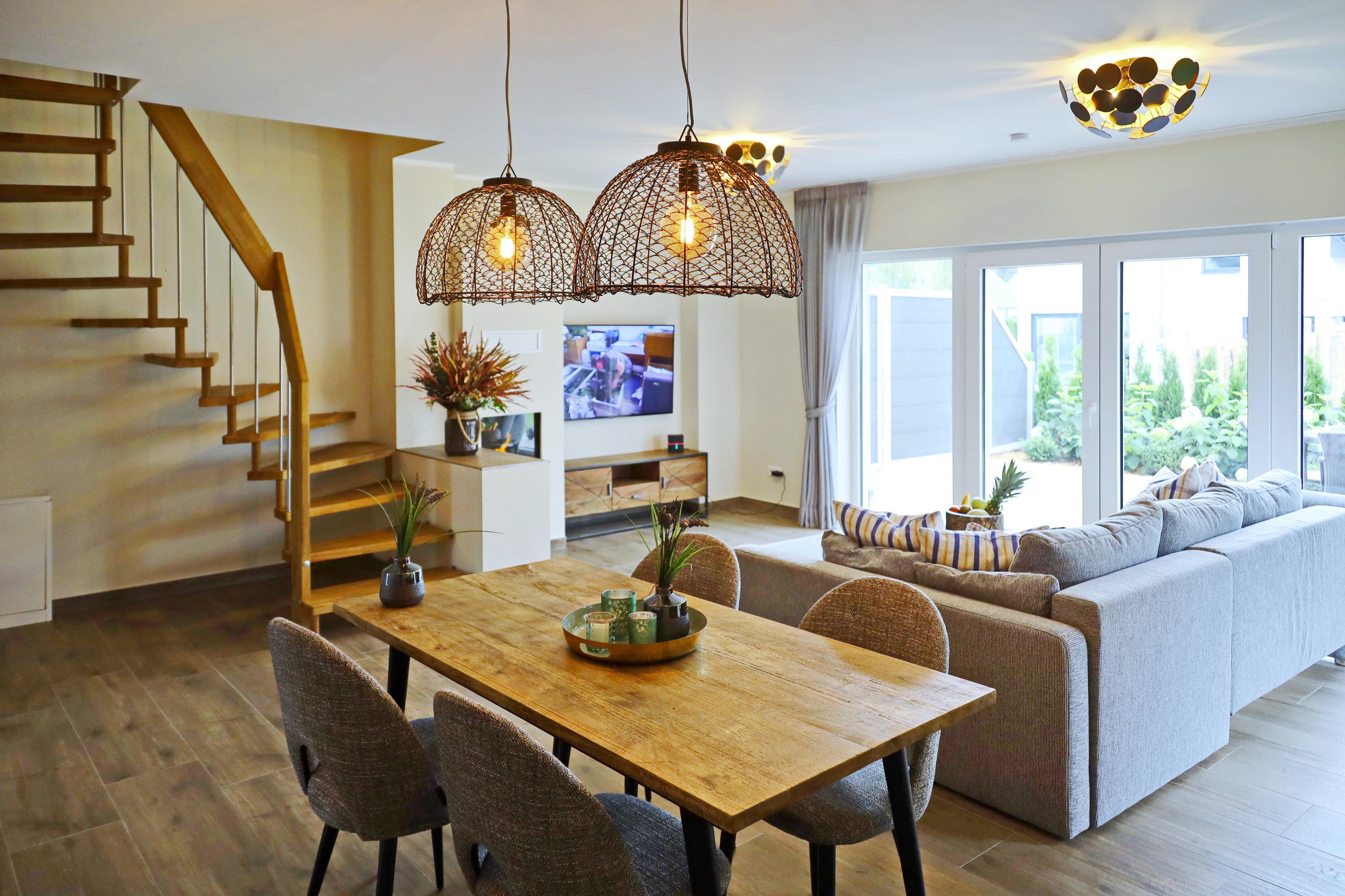 Das erst 2022 erbaute geschmackvolle Ferienhaus Ambiente-Annabelle verfügt über zwei separate Schlafzimmer (jeweils ausgestattet mit hochwertigen King-Size-Boxspringbetten), drei LG-Flachbild-Sat-TV, sowie eine vollausgestattete Küche. Im großen Wohnraum besteht die Möglichkeit, das Sofa mit wenigen Handgriffen in eine Schlafcouch zu verwandeln, so dass das Domizil auch durchaus mit 6 Personen belegt werden kann.