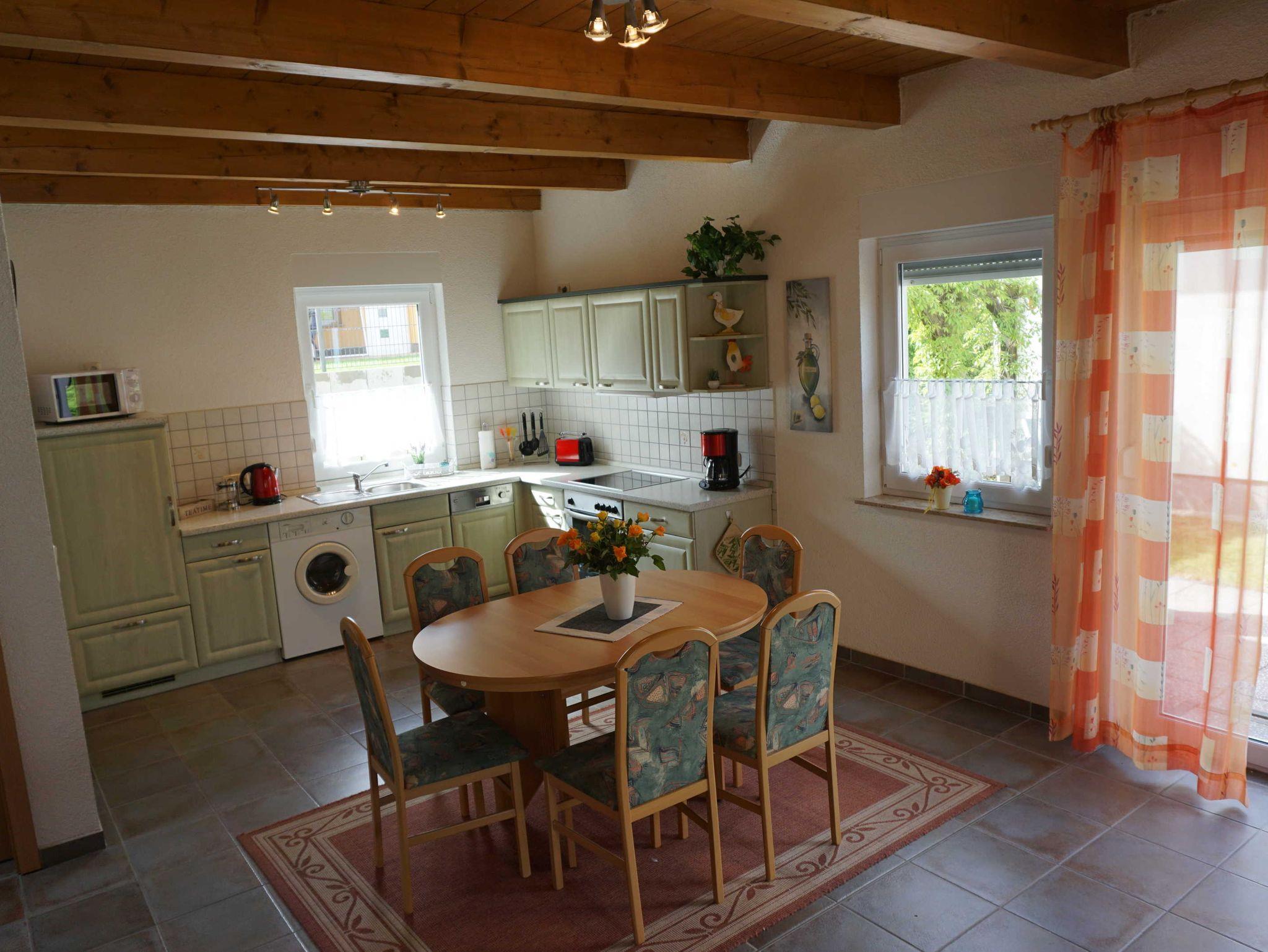 Unser Ferienhaus bietet eine ca. 110 m² Wohnfläche verteilt auf zwei Ebenen. Im Erdgeschoss befndet sich der großzügige und lichtdurchflutete Wohn-Essbereich mit offener Küche. Ihnen steht eine vollausgestattete Küche zur Verfügung. Für das gemeinsame Beisammensein bietet der ausziehbare Esstisch für 6 Personen ausreichend Platz. Ein Kinderhochstuhl ist optional buchbar. Der Wohnraum lädt mit seiner Sofa-Ecke und Sessel zum Entspannen, oder zu einem gemütlichen Fernsehabend/Spielabend ein. Weiterhin befindet sich im Erdgeschoss ein kleines Tageslicht-Bad mit Dusche und WC. Über eine Holztreppe gelangen Sie in das großzügige Obergeschoss. Hier finden Sie drei lichtdurchflutete Schlafzimmer. Zwei Schlafzimmer sind ausgestattet mit einem Doppelbett (180 cm x 200 cm inkl. Kopfkissen und Decke) und Kleiderschrank. Im dritten Schlafzimmer finden Sie eine bequeme Schlafcouch (ausziehbar, 160 cm x 200 cm inkl. Kopfkissen und Decke) und einen Kleiderschrank. Auch im Obergeschoss finden Sie ein weiteres modernes Tageslicht-Bad mit Dusche und WC. Auf der Terrasse und im Garten können Sie die Seele baumeln lassen, die Sonne genießen und den Abend mit einem ausgiebigen Grillabend ausklingen lassen. Bettwäsche ist vorhanden, Handtücher müssen hinzugebucht werden oder werden mitgebracht. Kurtaxe ist gesondert beim Vermieter per Überweisung zu entrichten. In der Hauptsaison erfolgt die Anreise/Abreise nur Samstag.