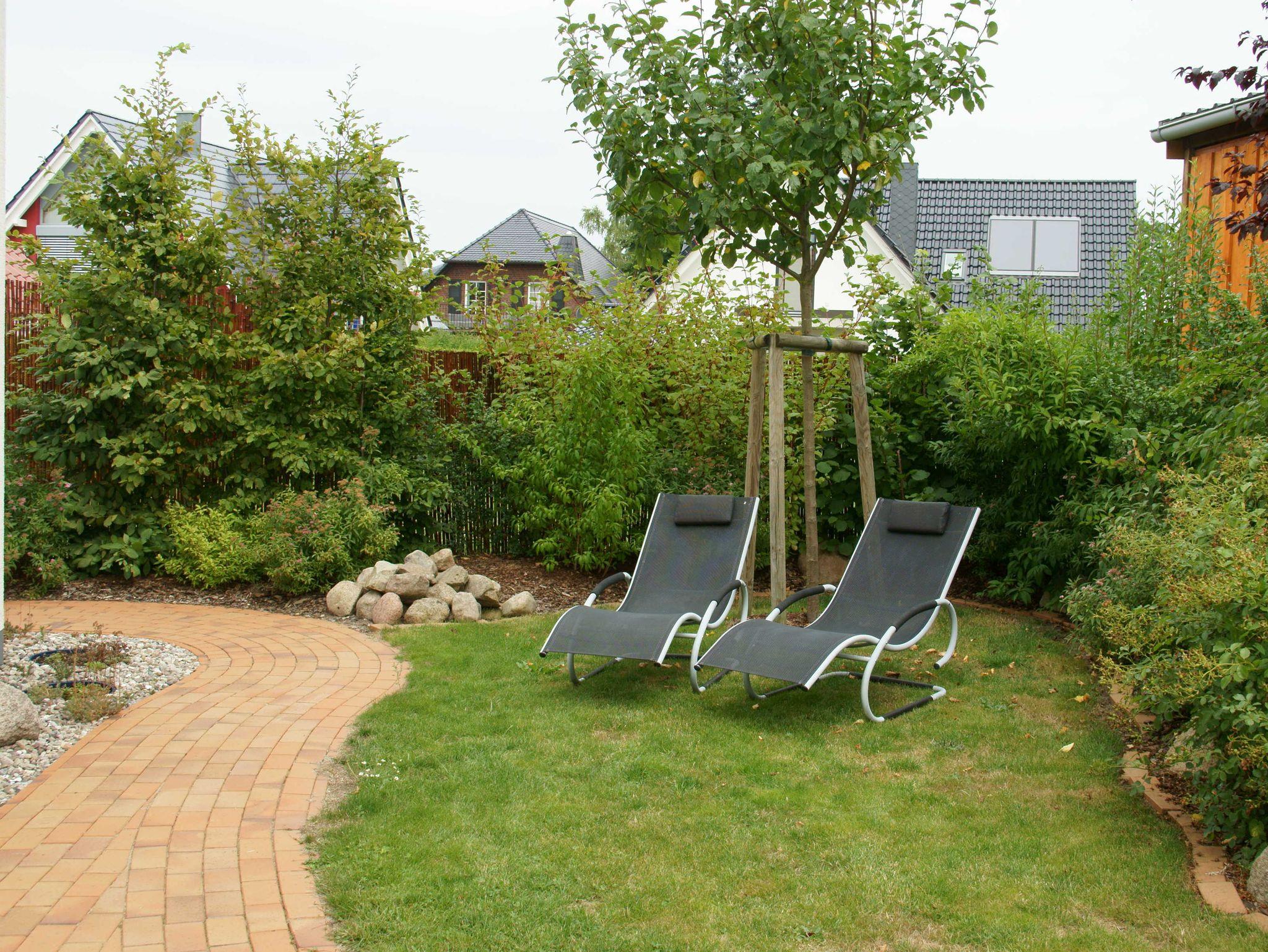 Die Terrasse mit Gartenmöbeln, Ampelsonnenschirm und einem Grill lädt zum Aufenthalt im Freien ein. Sie führt um das Haus herum und bietet Ihnen Sonnenschein von morgens bis abends.