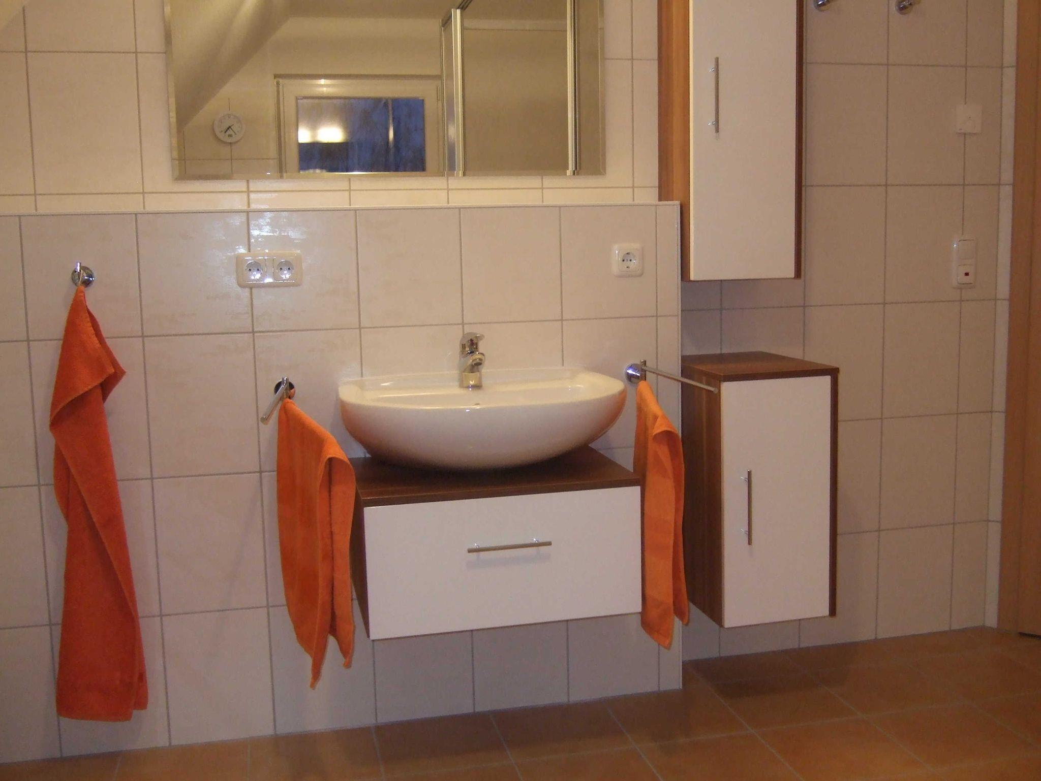 Zwei geräumige Bäder stehen Ihnen zur Verfügung, im EG mit Dusche und WC, im OG mit Badewanne, Dusche und WC.