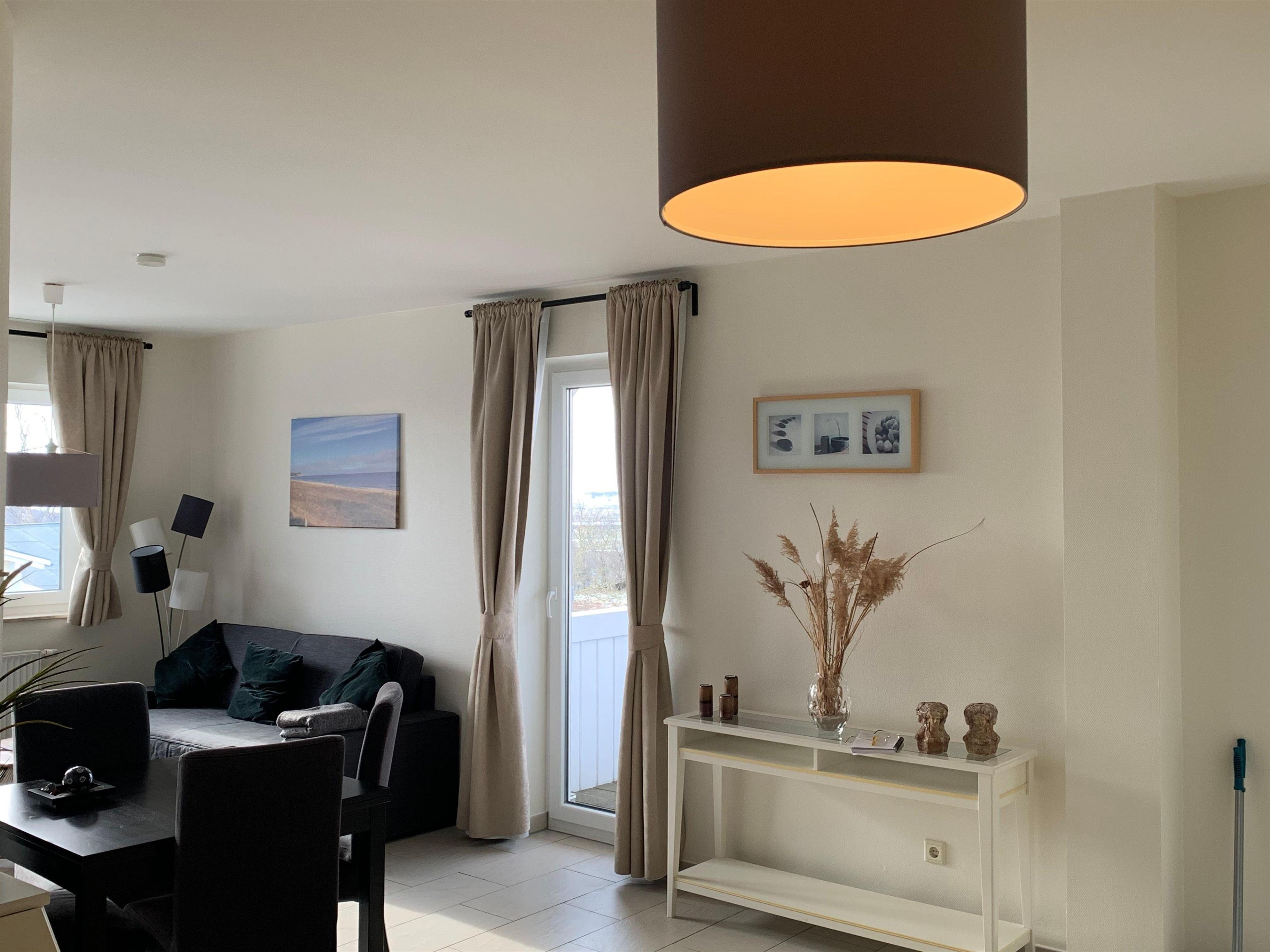 Morgens fällt das Licht klar und frisch in die Räume, abends taucht es Himmel und Ostsee in sanfte Farben. Auf ca. 56–58 m² Wohnfläche bietet die Wohnung Raum zum Ankommen, Entspannen und Innehalten – hoch oben, ruhig und mit freiem Blick über die Ostsee. Ideal für Paare, Familien oder Gäste mit Hund, die das Meer lieben und zugleich einen Ort der Ruhe suchen. Auch für Homeoffice oder eine kleine Workstation eignet sich die Wohnung durch ihre helle, entspannte Atmosphäre sehr gut.