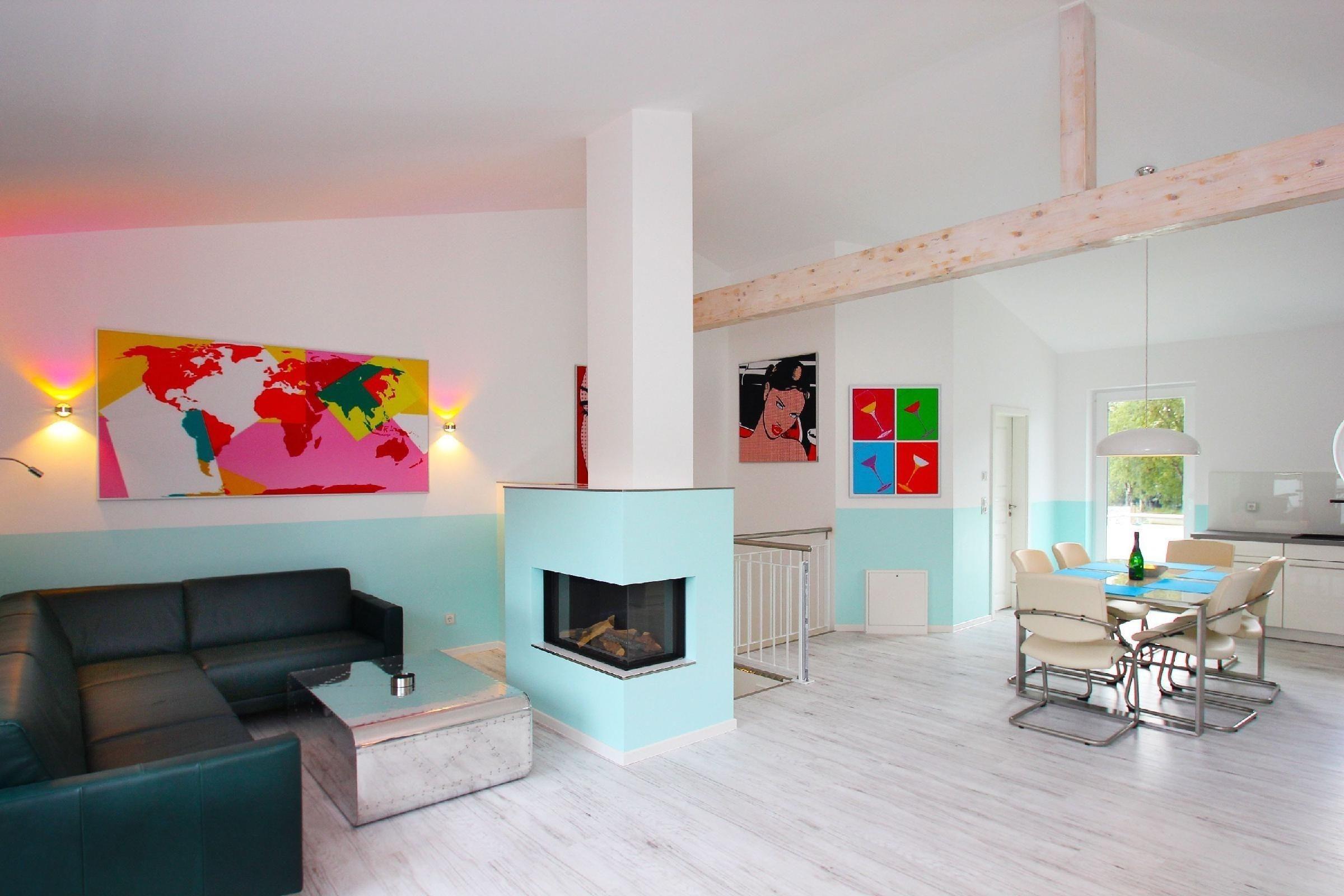 Die Ferienwohnung bietet erstklassigen Komfort und eine moderne Ausstattung für einen entspannten Aufenthalt. Sie umfasst drei Schlafzimmer mit insgesamt drei Doppelbetten, ideal für Familien oder Gruppen. Die offene Küche ist mit einem Geschirrspüler, Elektro- und Gasherd, Backofen, Mikrowelle, Kühlschrank, Kaffeemaschine, Toaster und einer Gefriermöglichkeit ausgestattet, um kulinarische Köstlichkeiten zu zaubern. Zwei Badezimmer mit Fenster und Fußbodenheizung sorgen für zusätzlichen Komfort. Das Wohnzimmer lädt mit einem Sofa und einem Kamin beziehungsweise Kachelofen zur Gemütlichkeit ein. Unterhaltung wird durch eine HiFi-Anlage und einen Fernseher geboten. Zur praktischen Ausstattung gehören Internet mit WLAN, eine Waschmaschine, ein Wäschetrockner sowie ein Safe. Zudem ist die Ferienwohnung allergikergeeignet und bietet private Parkmöglichkeiten. Hier finden Gäste die perfekte Oase zum Entspannen und Wohlfühlen.
