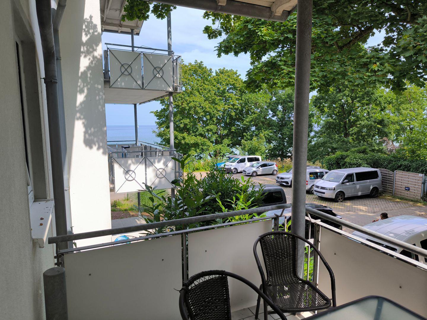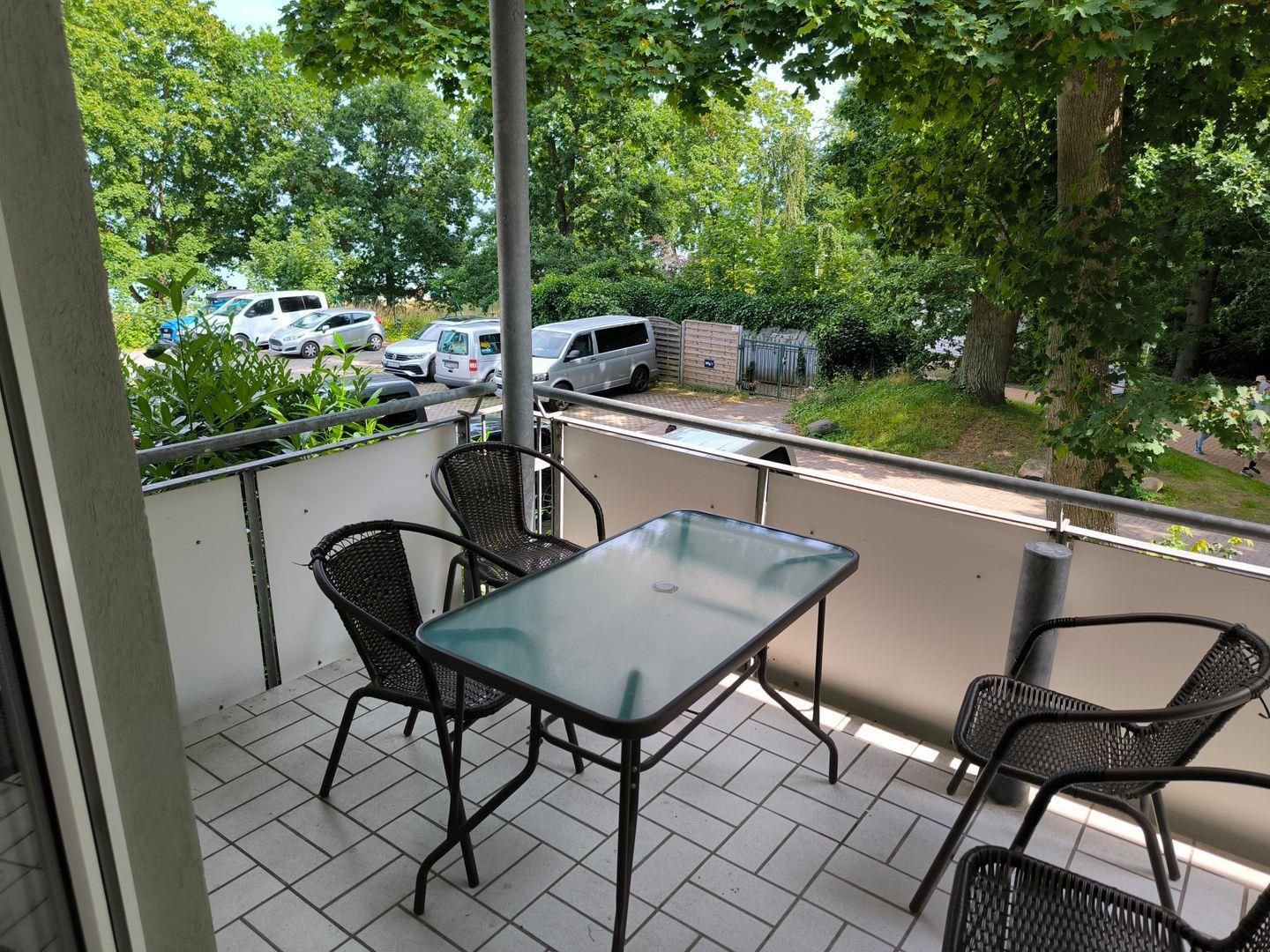 Die Ferienwohnung ist freundlich eingerichtet und hat einen Balkon.