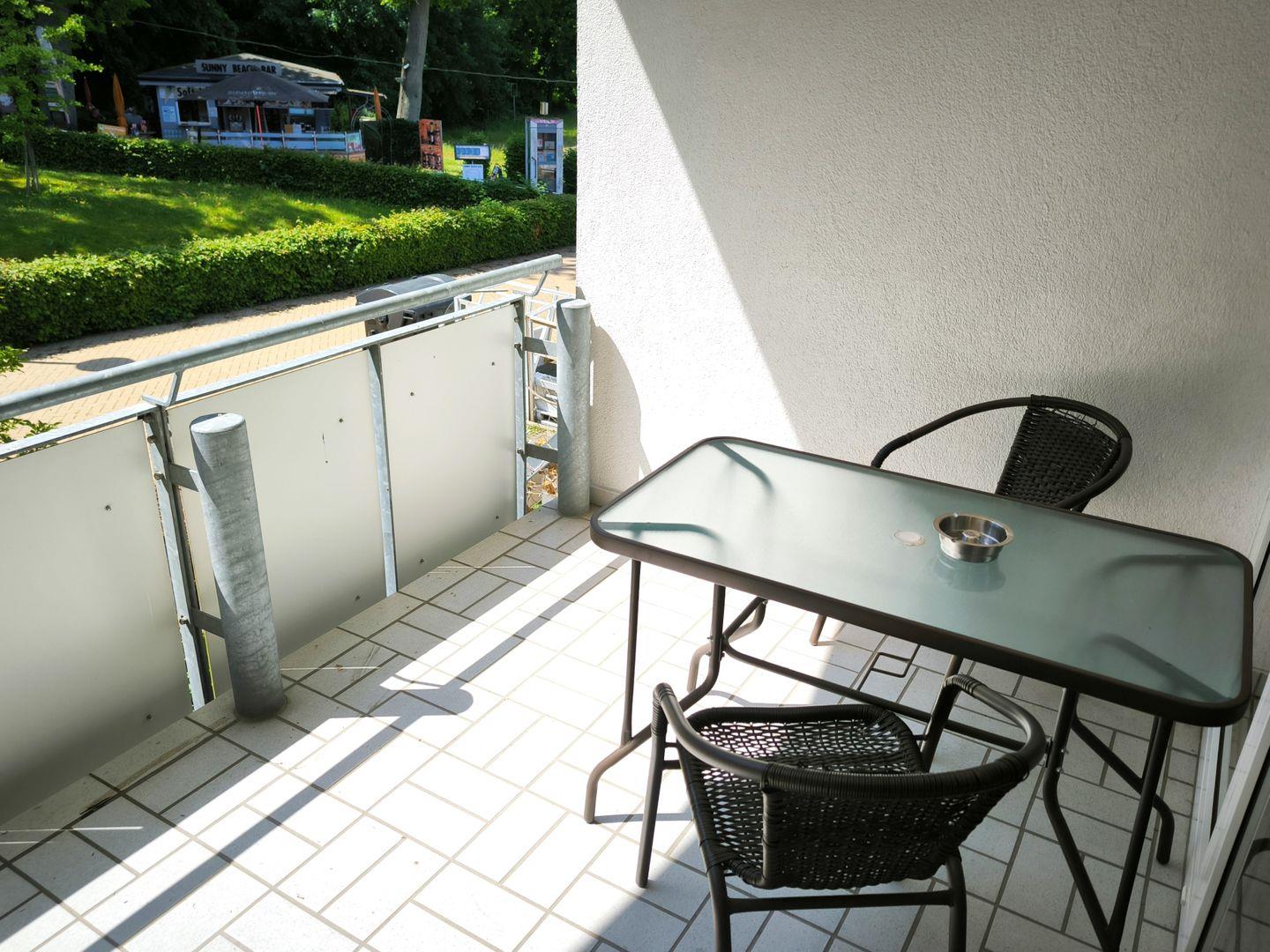 Die Ferienwohnung ist freundlich eingerichtet und hat einen Balkon.