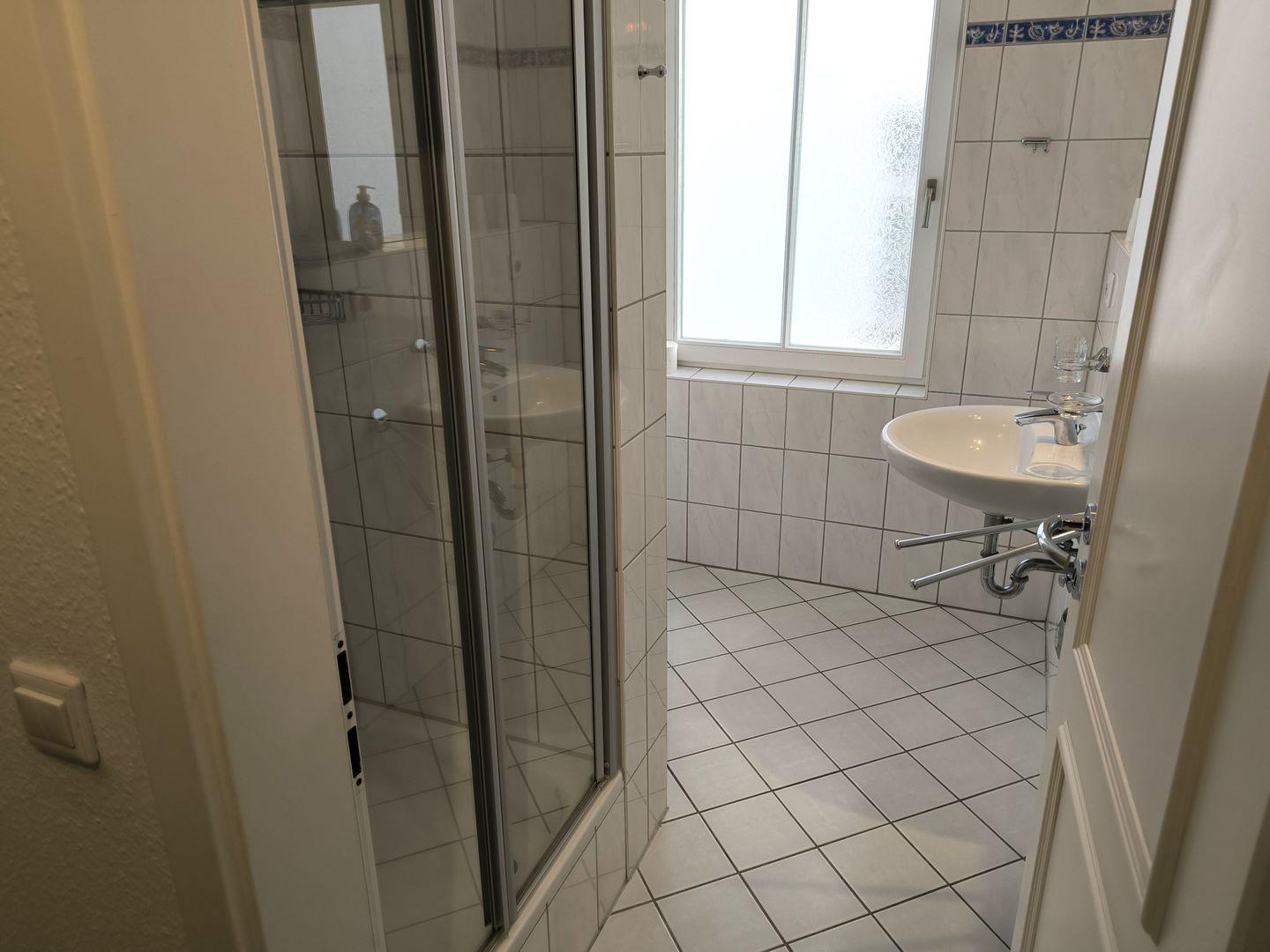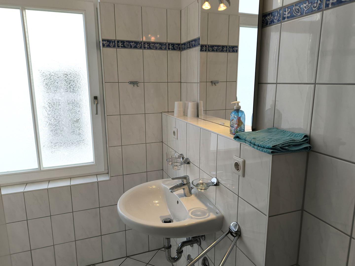 Bad mit Fenster, Dusche, WC und Fön