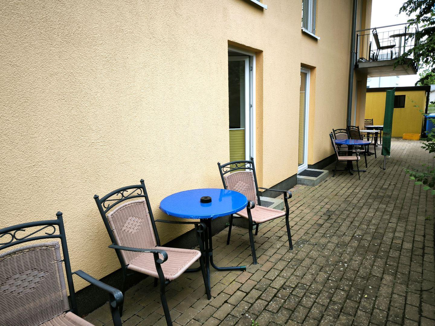 kombinierter Wohn-/ Schlafbereich mit Doppelbett ( 180×200 ) und Esstisch mit 2 Stühlen