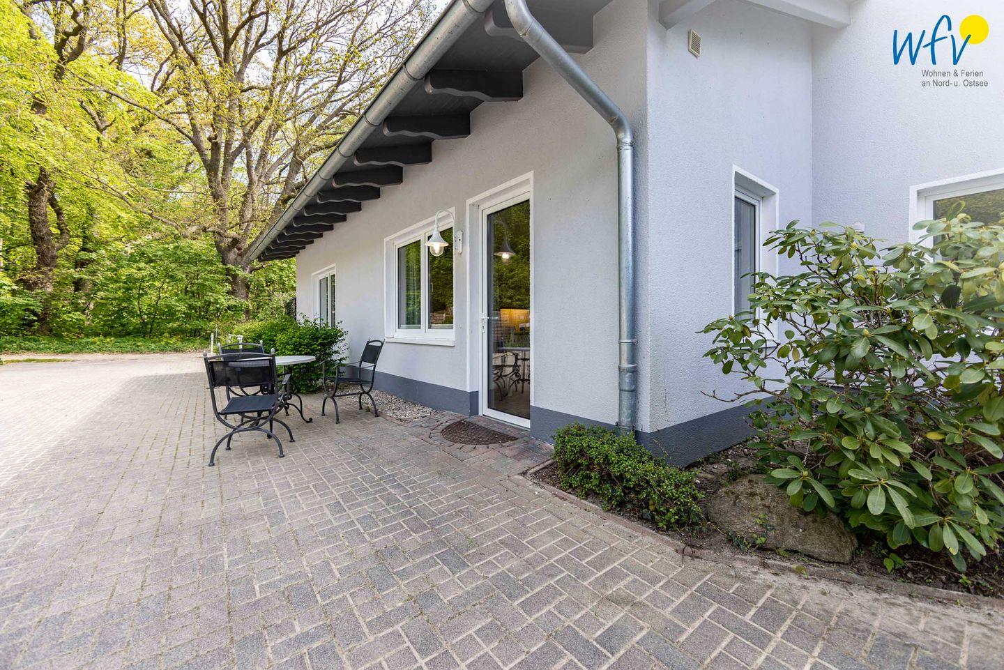 Oder Sie entspannen im Freien bei wohltuender Ostseeluft: Zur Ferienwohnung gehört ein gemütlicher Sitzplatz vor der Terrassentür, die zum Innenhof der Ferienanlage führt. Ein Tisch und drei Stühle laden hier zum Verweilen ein. (Dieser Bereich ist nicht vom Innenhof der Ferienanlage abgetrennt.) Das „Haus am Hövt“ verfügt zudem über einen Gemeinschaftsgarten mit Grillplatz, Tischtennisplatte und Spielmöglichkeiten, den Sie gerne nutzen dürfen.