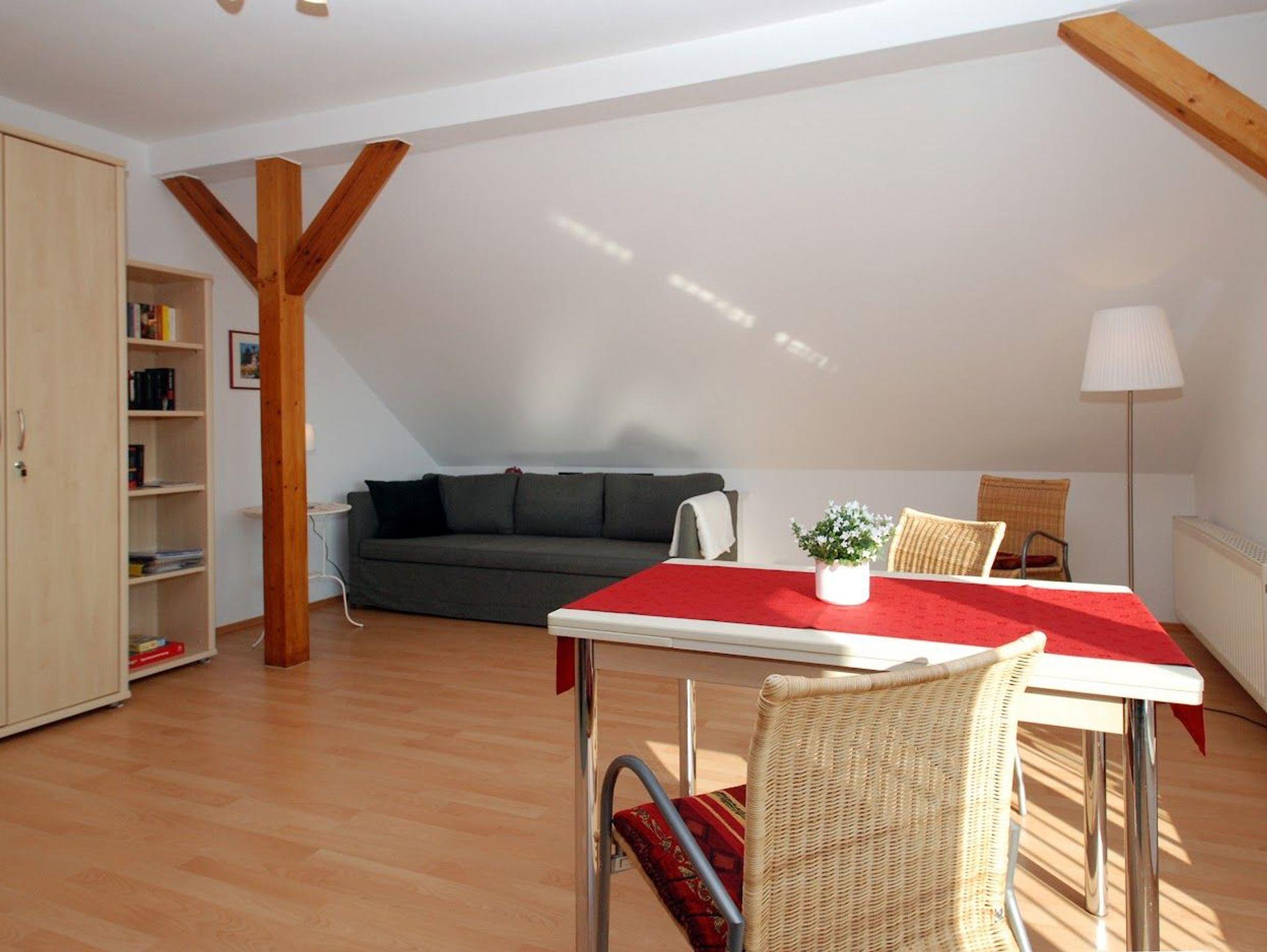 Die Nichtraucher - Wohnung befindet sich im Dachgeschoss eines Zweifamilienhauses. Das großzügige und gepflegte Grundstück verfügt über einen Außenpool (8 x 4 m), eine großzügige Liegewiese mit Sonnenschirm sowie eine separate Sitzfläche für die Feriengäste mit Holzkohlegrill.