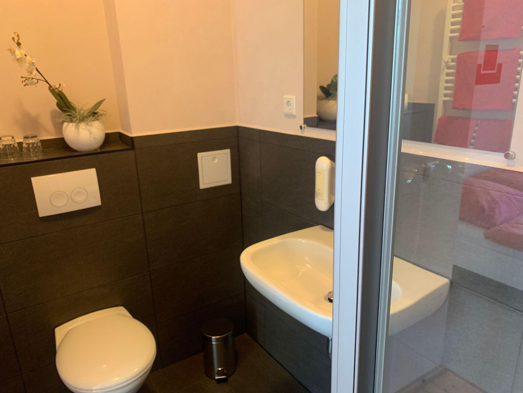Das Zimmer verfügt über ausreichend Platz für zwei Personen. Zu jedem Zimmer gehört selbstverständlich ein eigenes modernes Badezimmer.