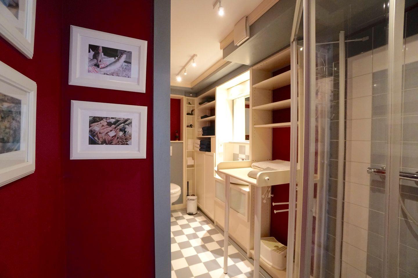 Das Bad 1 (Dusche, Waschbecken, WC) ist klein, aber mit allem Komfort ausgestattet inklusive Wickeltisch bzw. großer Ablage.