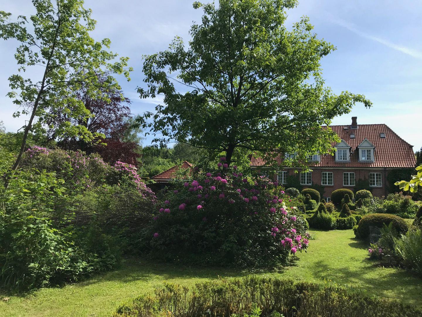 Der Garten grenzt an urigen Wald, der der bekannten Internatsschule Louisenlund gehört. Das Haus liegt in einer